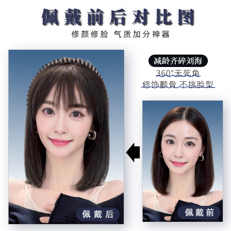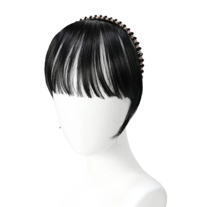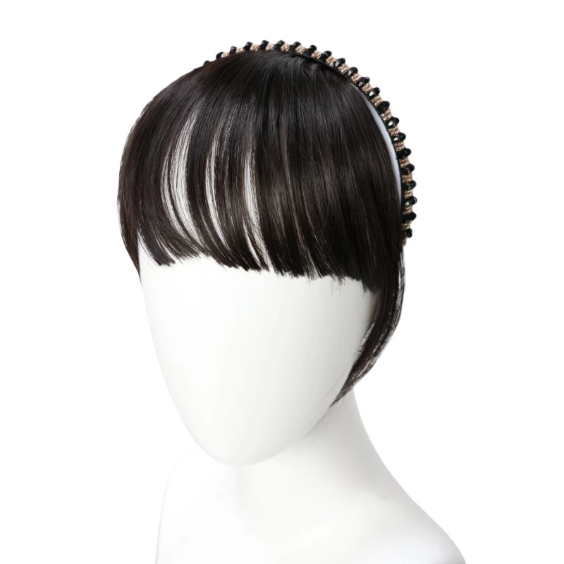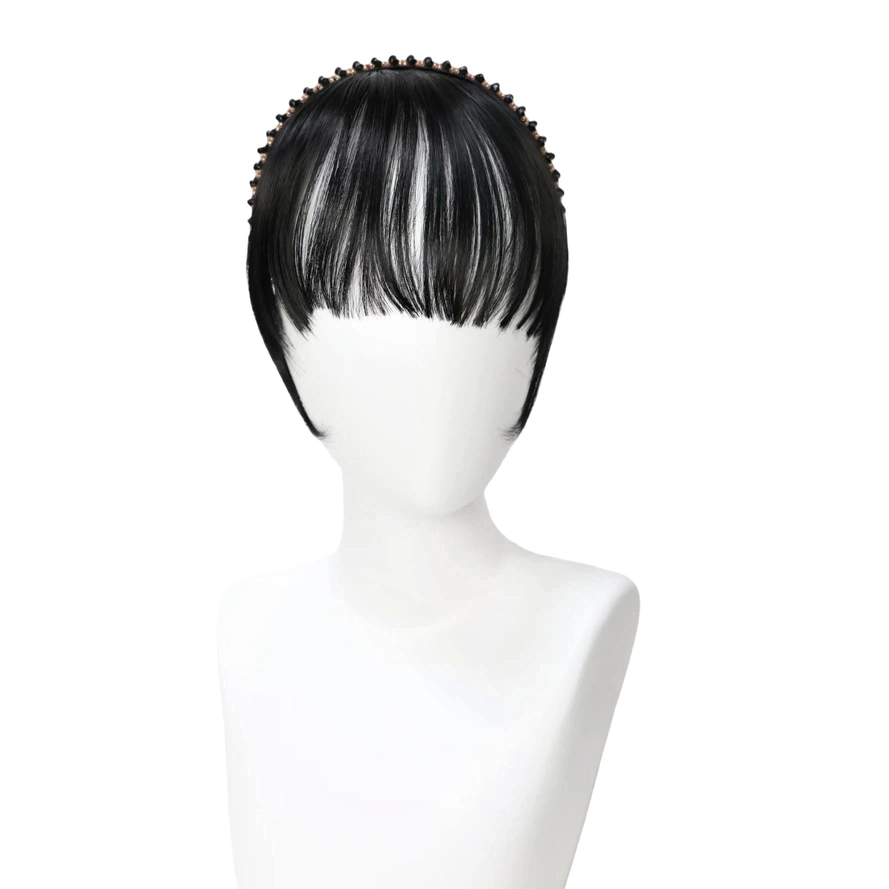 rhinestone headband bangs with horns-natural black