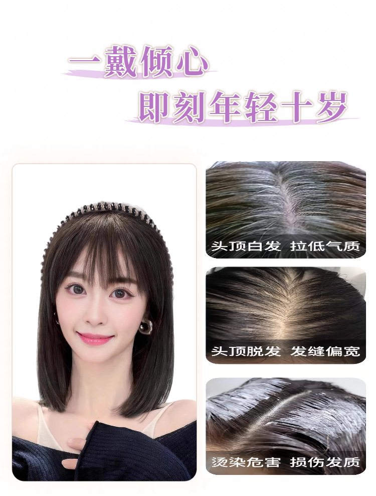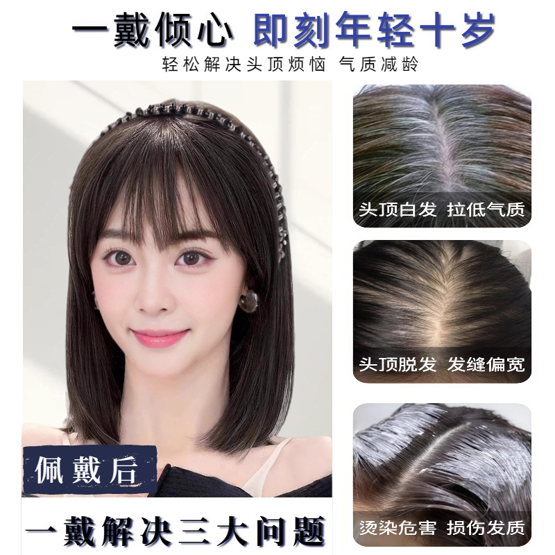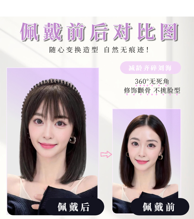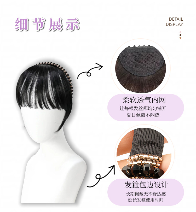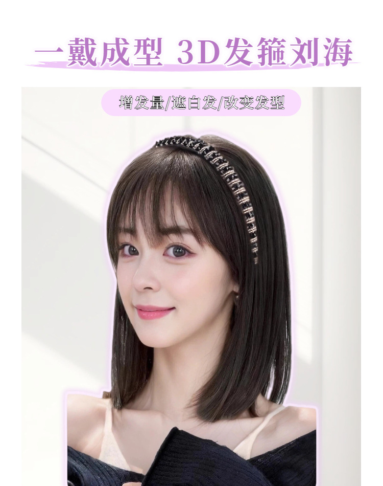 rhinestone headband bangs with horns-natural black