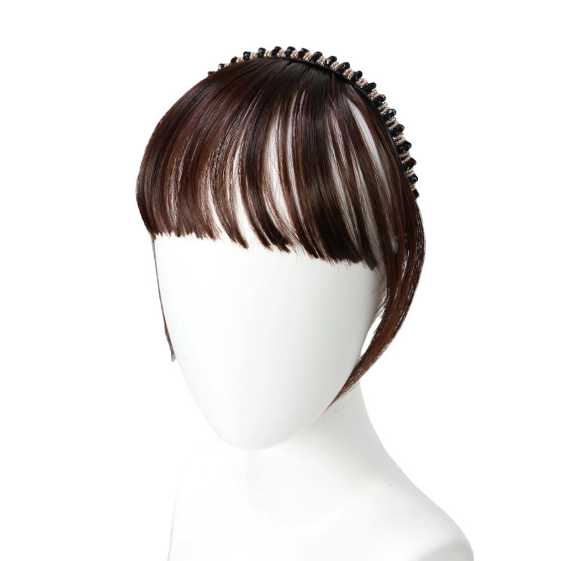rhinestone headband bangs with horns-dark brown