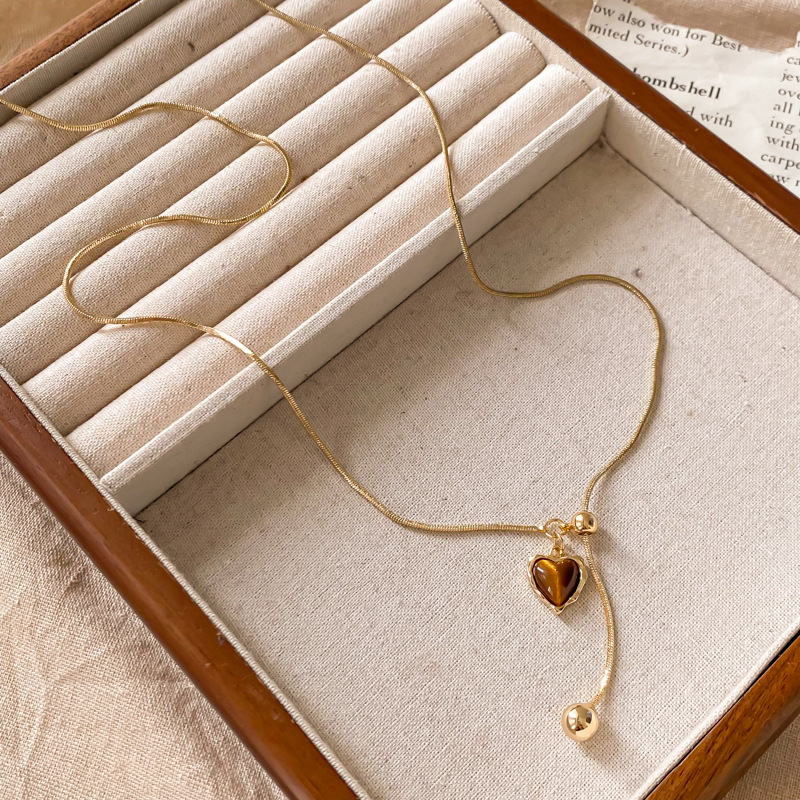 tigereye gold & small ball pendant adjustable necklace-circumference about 74cm
