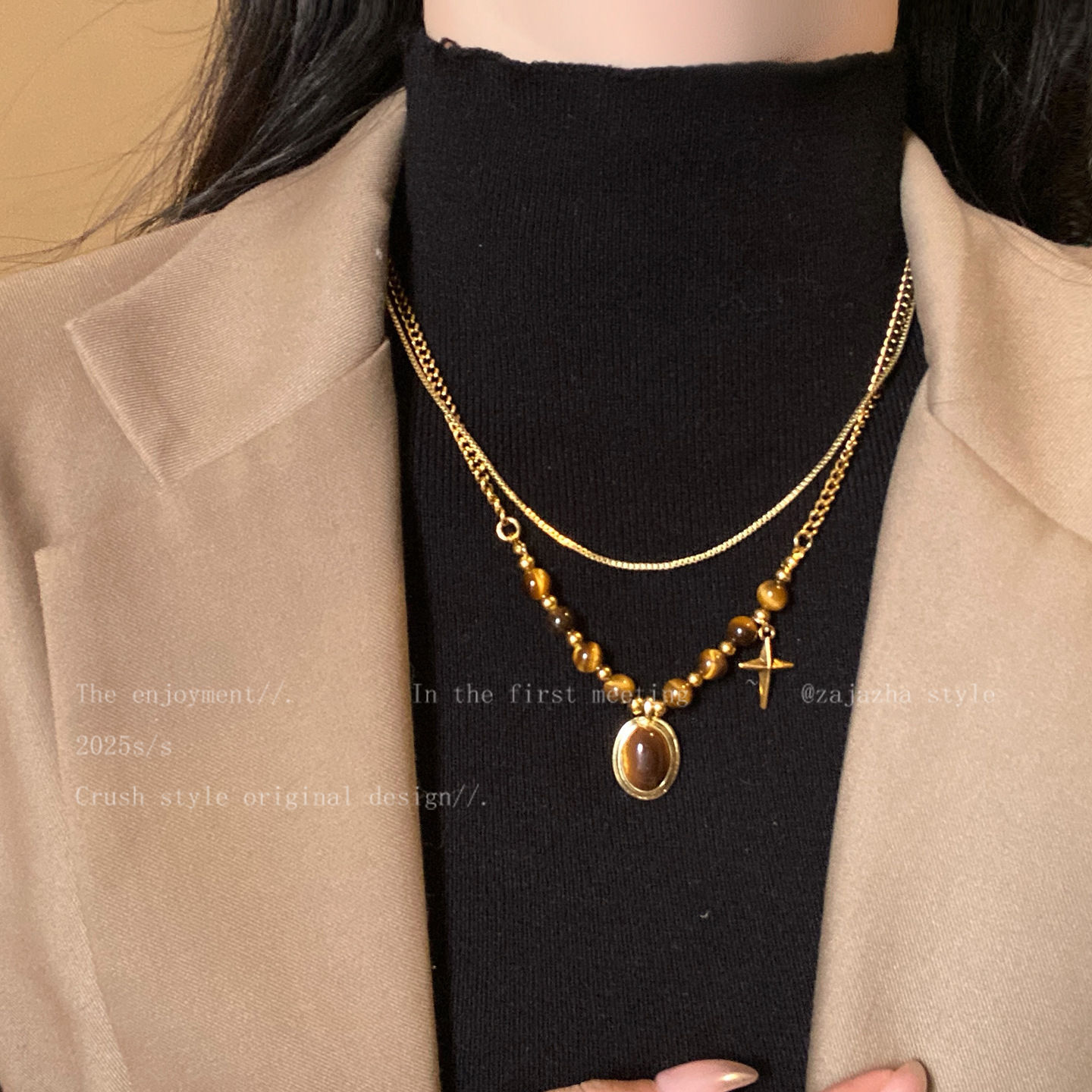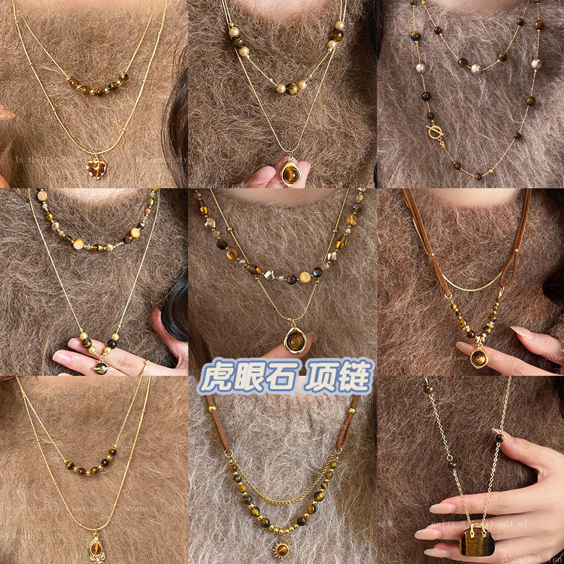 double-layer blooming tigereye pendant necklace-circumference about 46cn