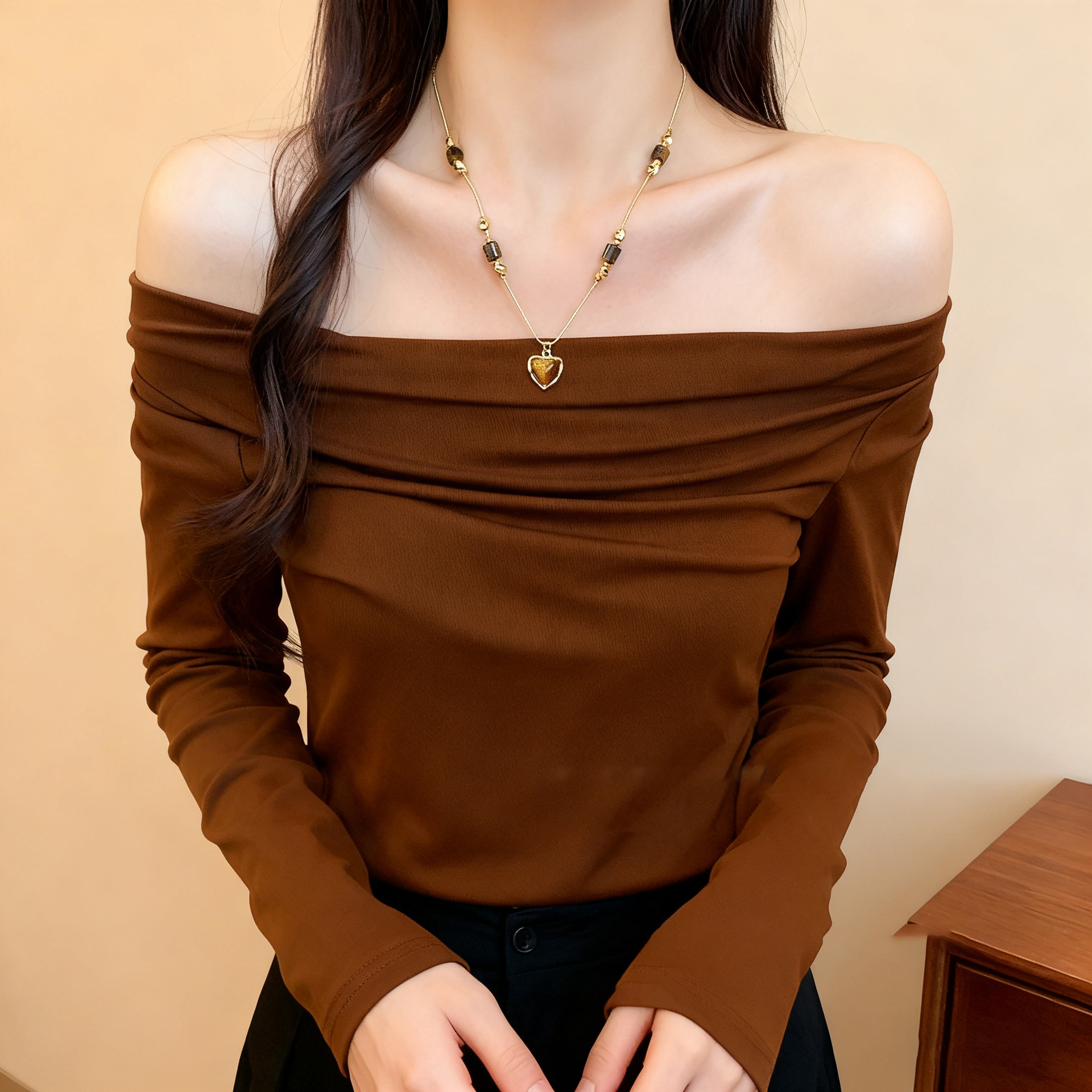 dark coffee color wooden irregular long geometric necklace-circumference about 80cm