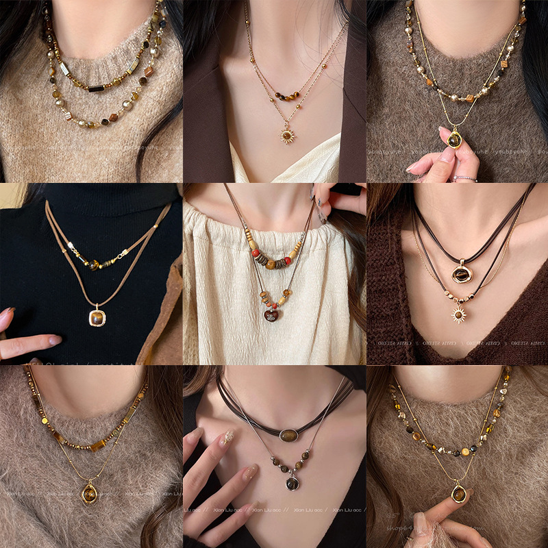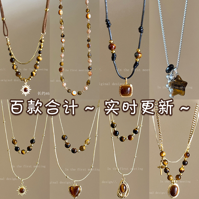 double-layer blooming tigereye pendant necklace-circumference 46cn