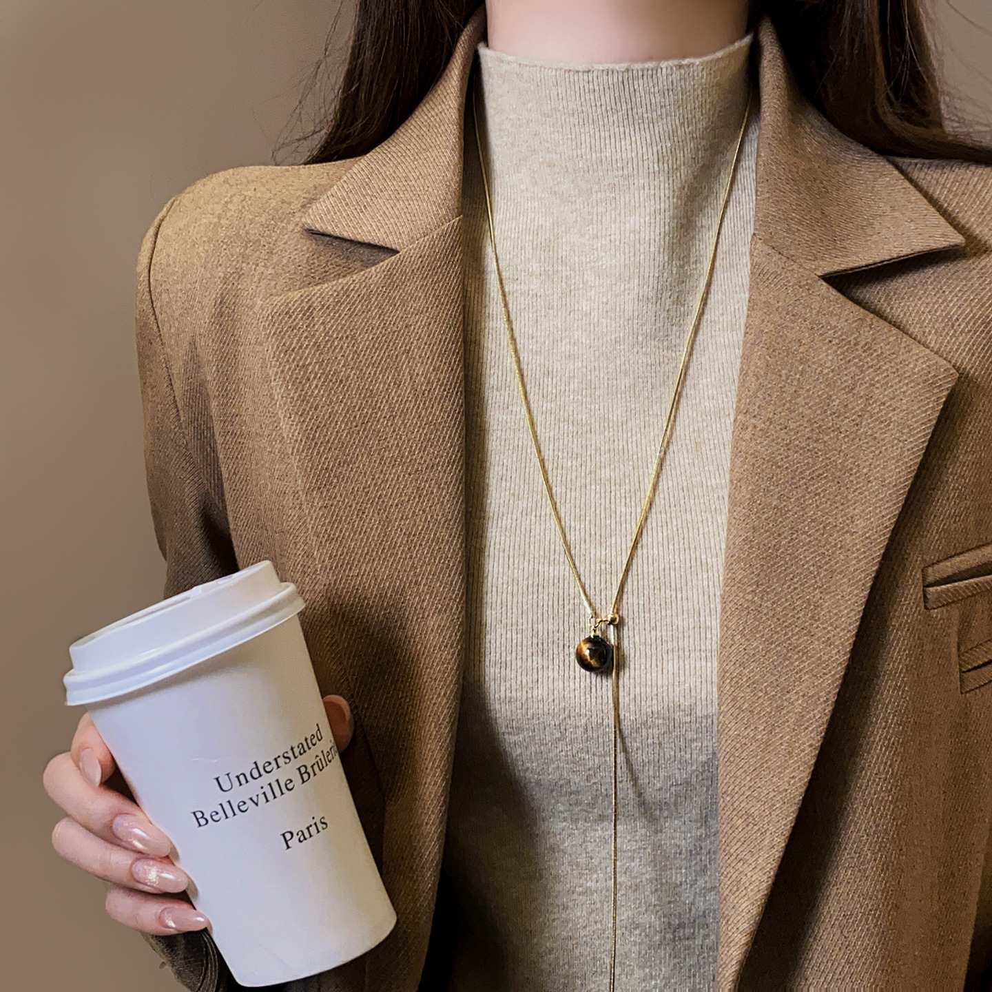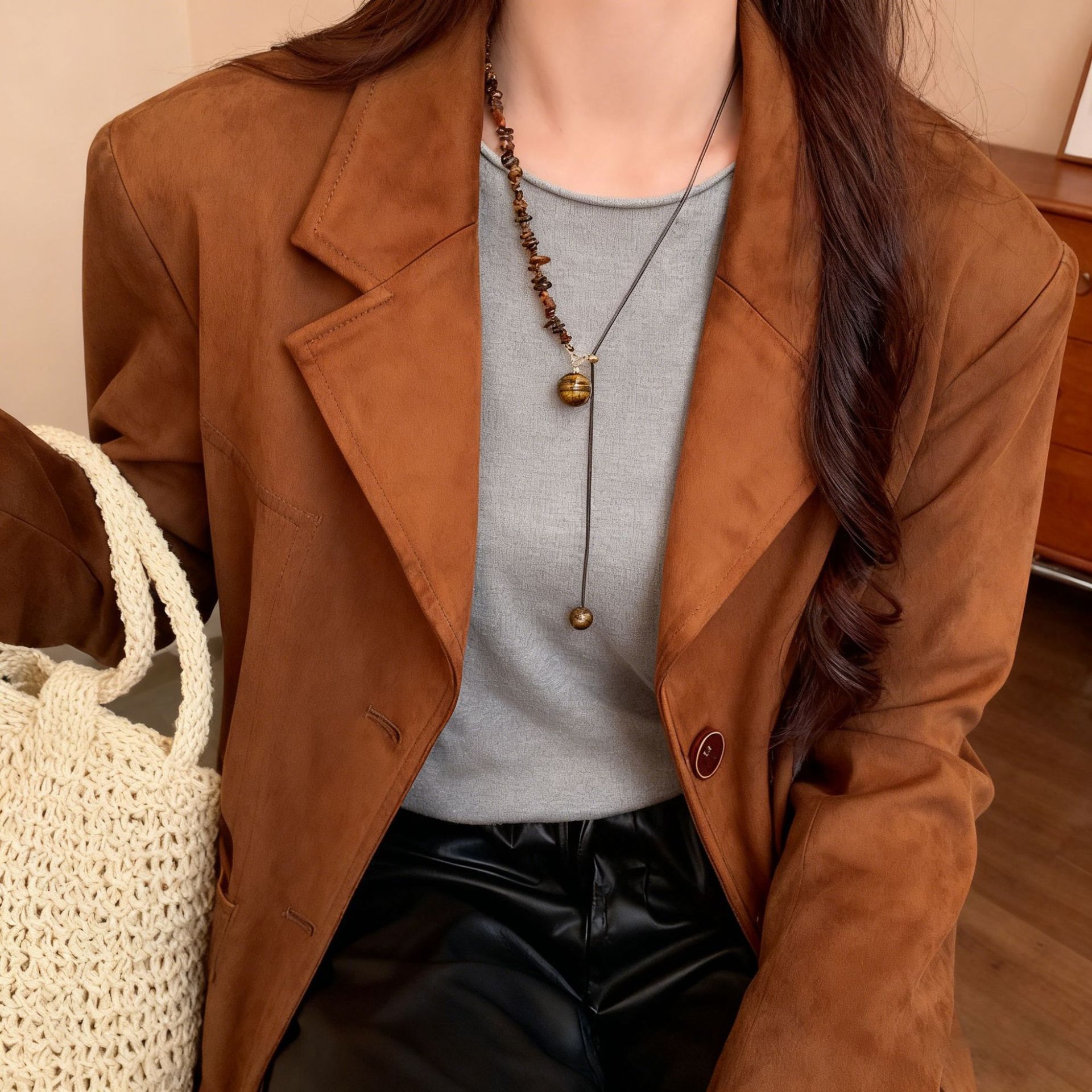beaded tigereye pendant adjustable necklace-circumference about 66cm