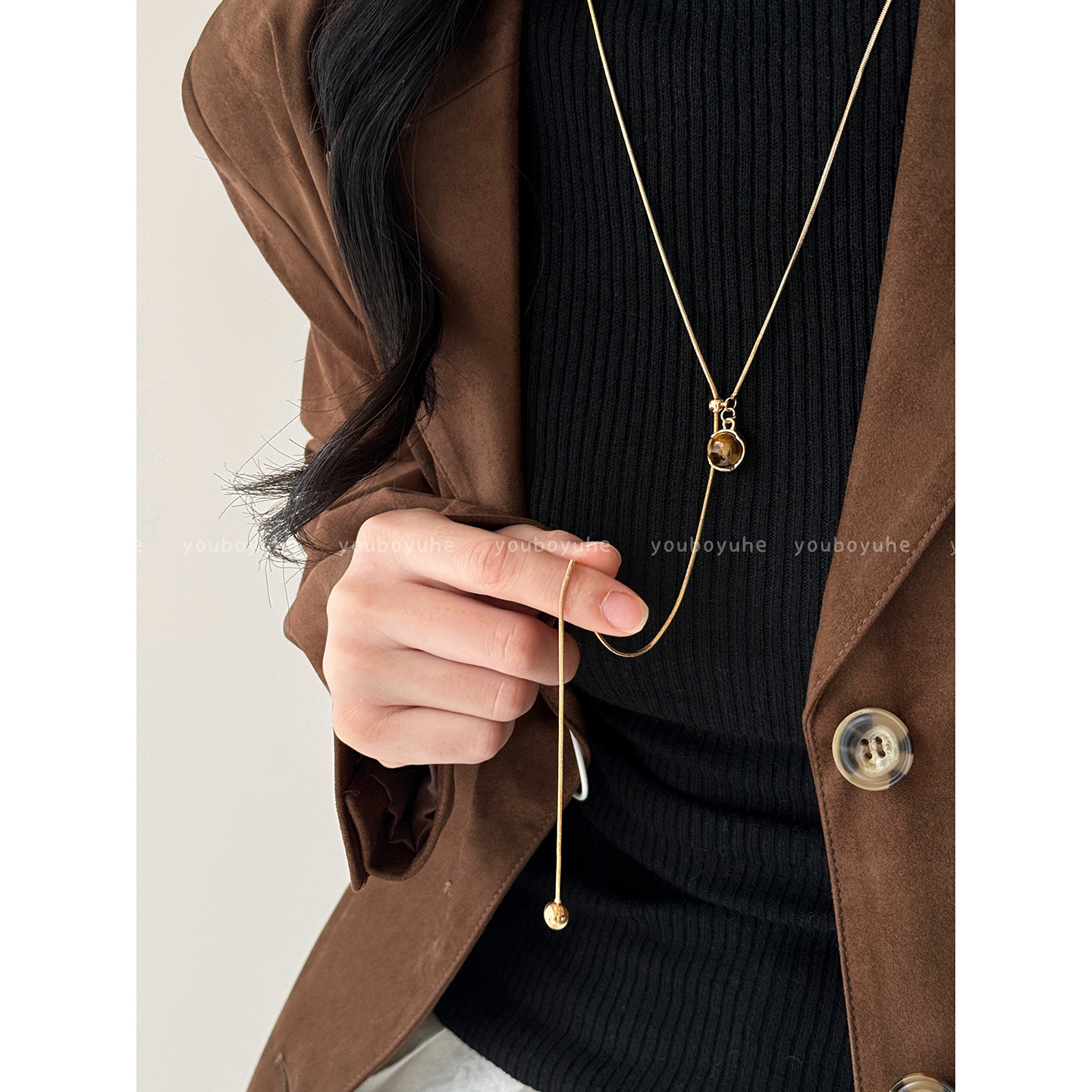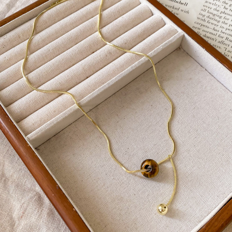 tigereye gold & small ball pendant adjustable necklace-circumference about 74cm