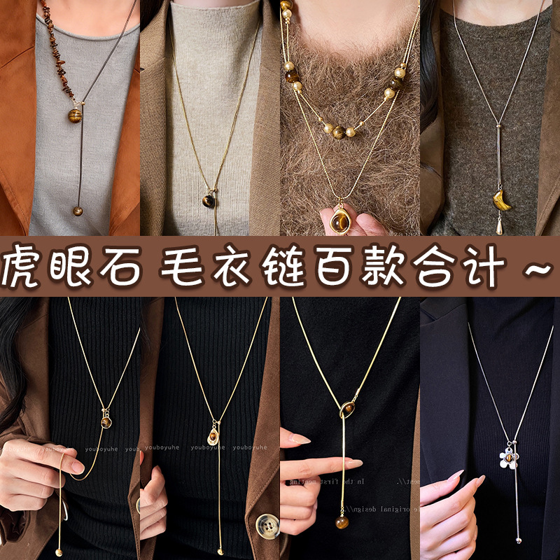 round beads tigereye pendant drawable necklace-circumference about 72cm