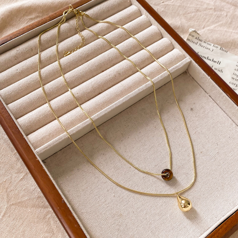 water drop tigereye golden balls necklace-38cm