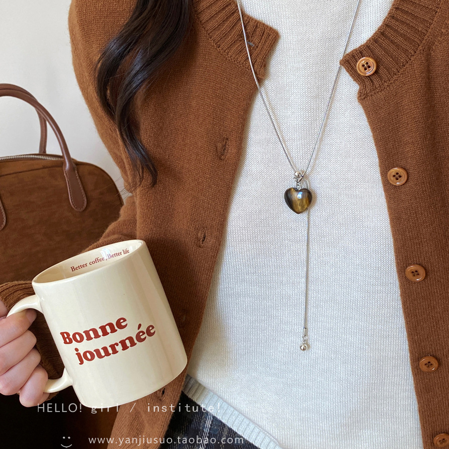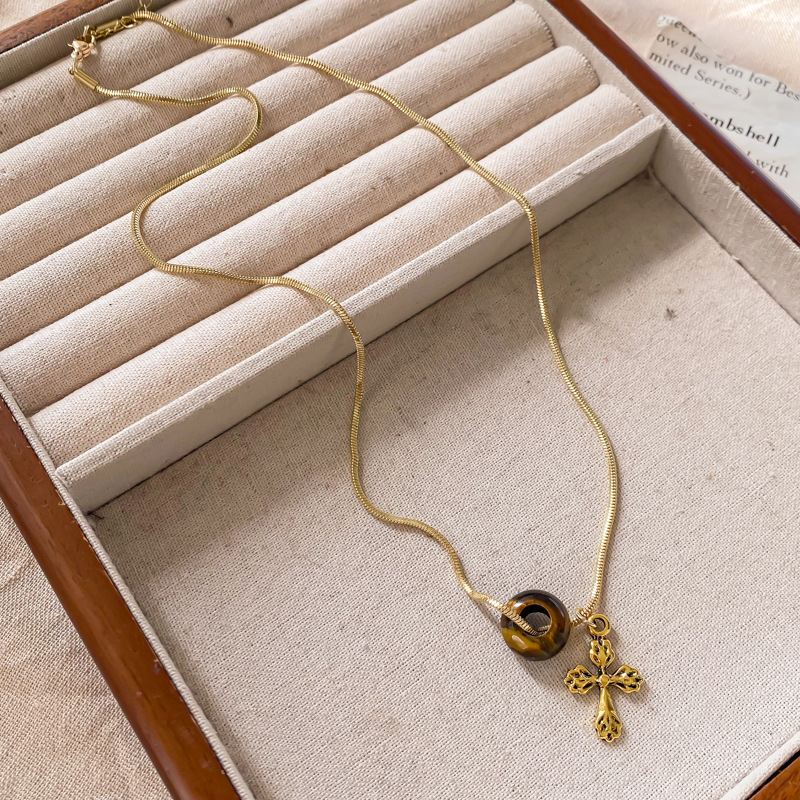 gold tigereye love pendant small cylindrical necklace-circumference about 44cm