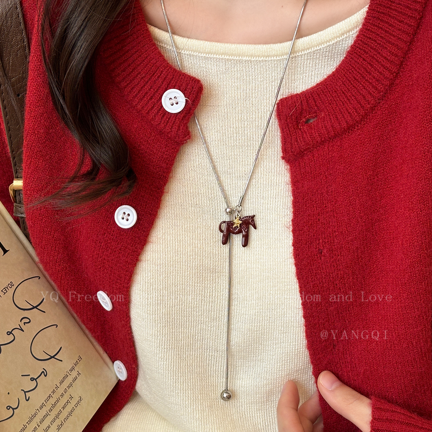 brown pony pentagram pendant adjustable necklace-circumference about 66cm