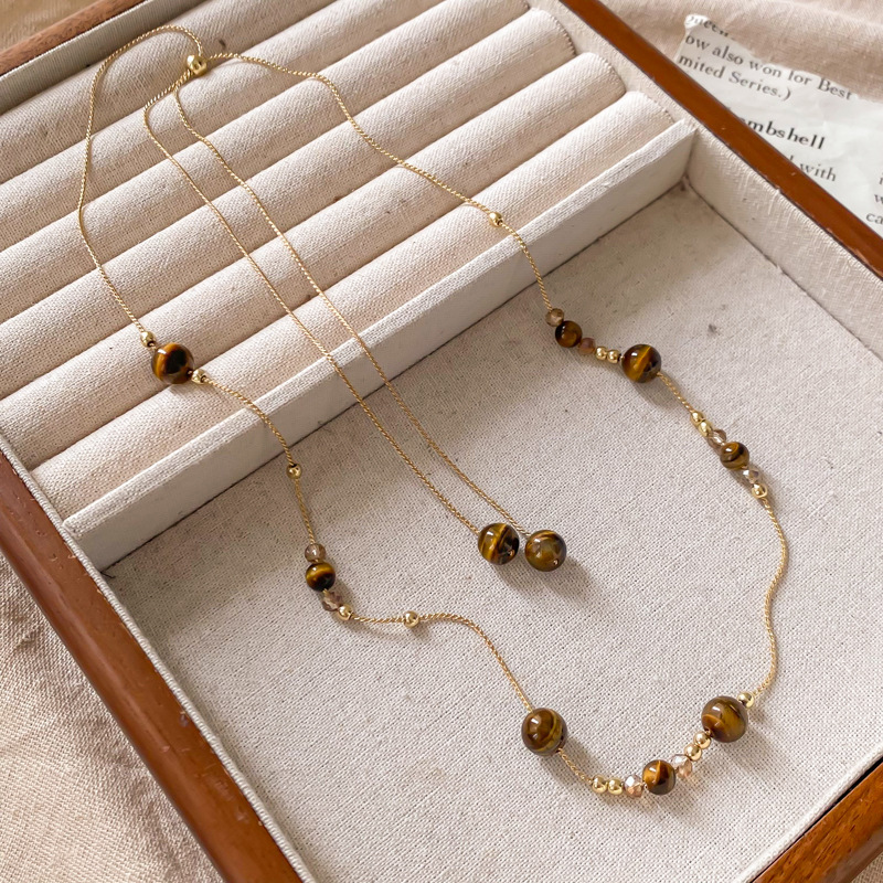 golden balls sun tigereye double-layer necklace-40cm