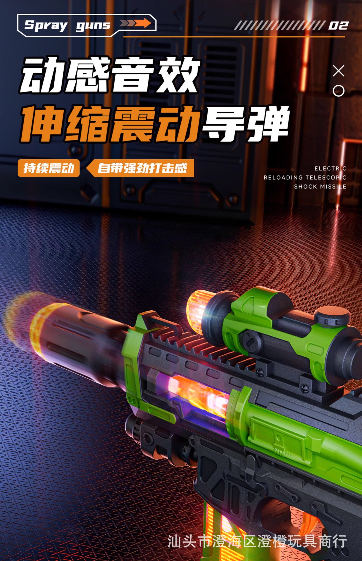 34cm spray submachine gun-sound and light vibration telescopic [green 】