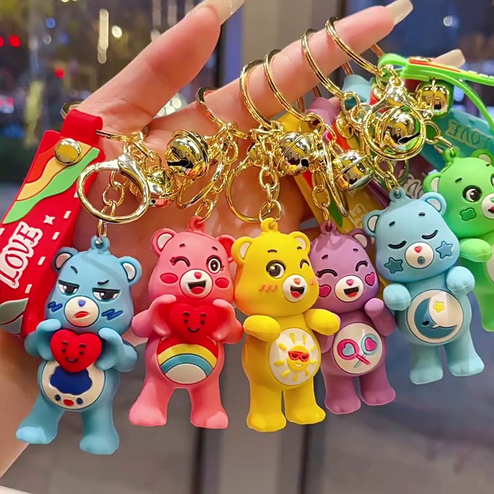 rainbow love bear keychain cute creative rainbow bear car key chain schoolbag small ornaments gift wholesale