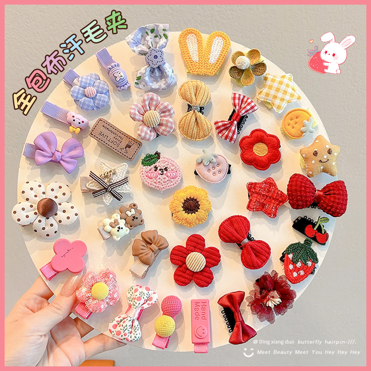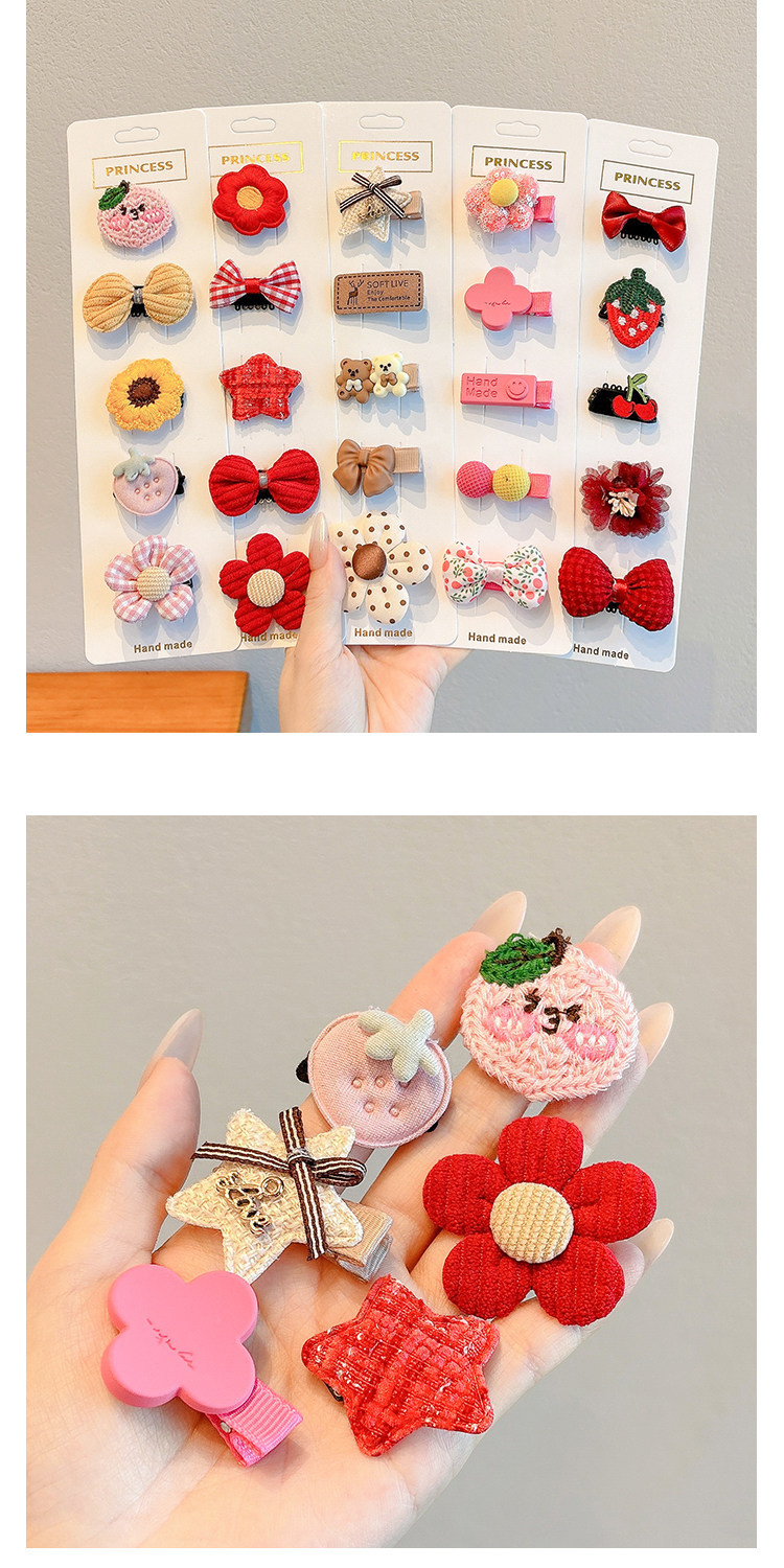 red flower panda hairclip 5-piece set