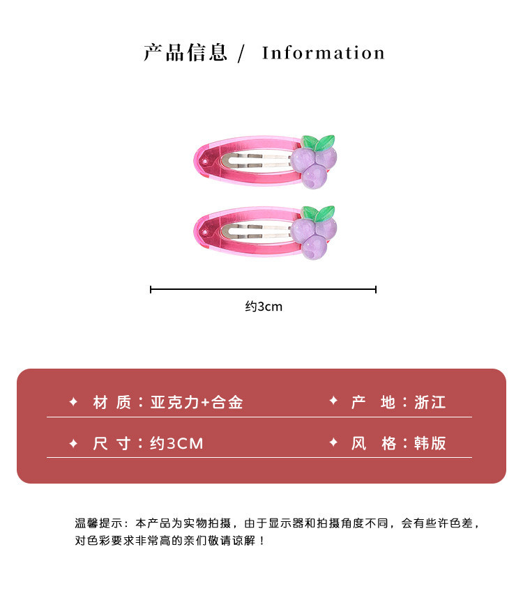 1 pair of barrettes grapes-bottom clip about 5cm