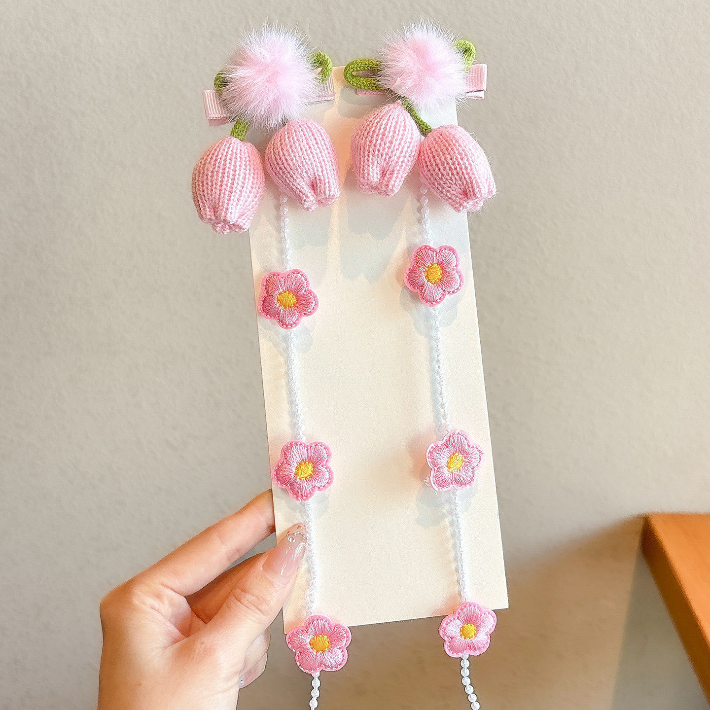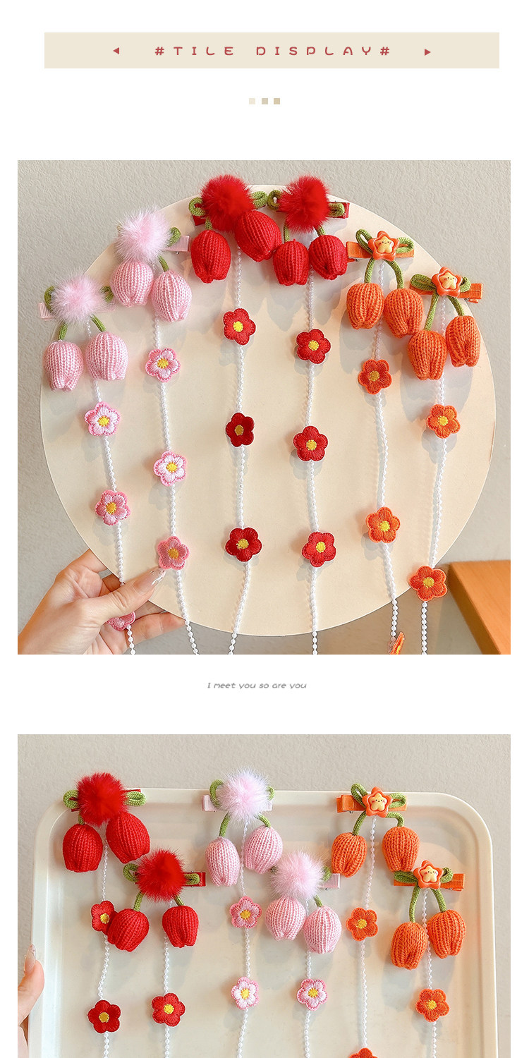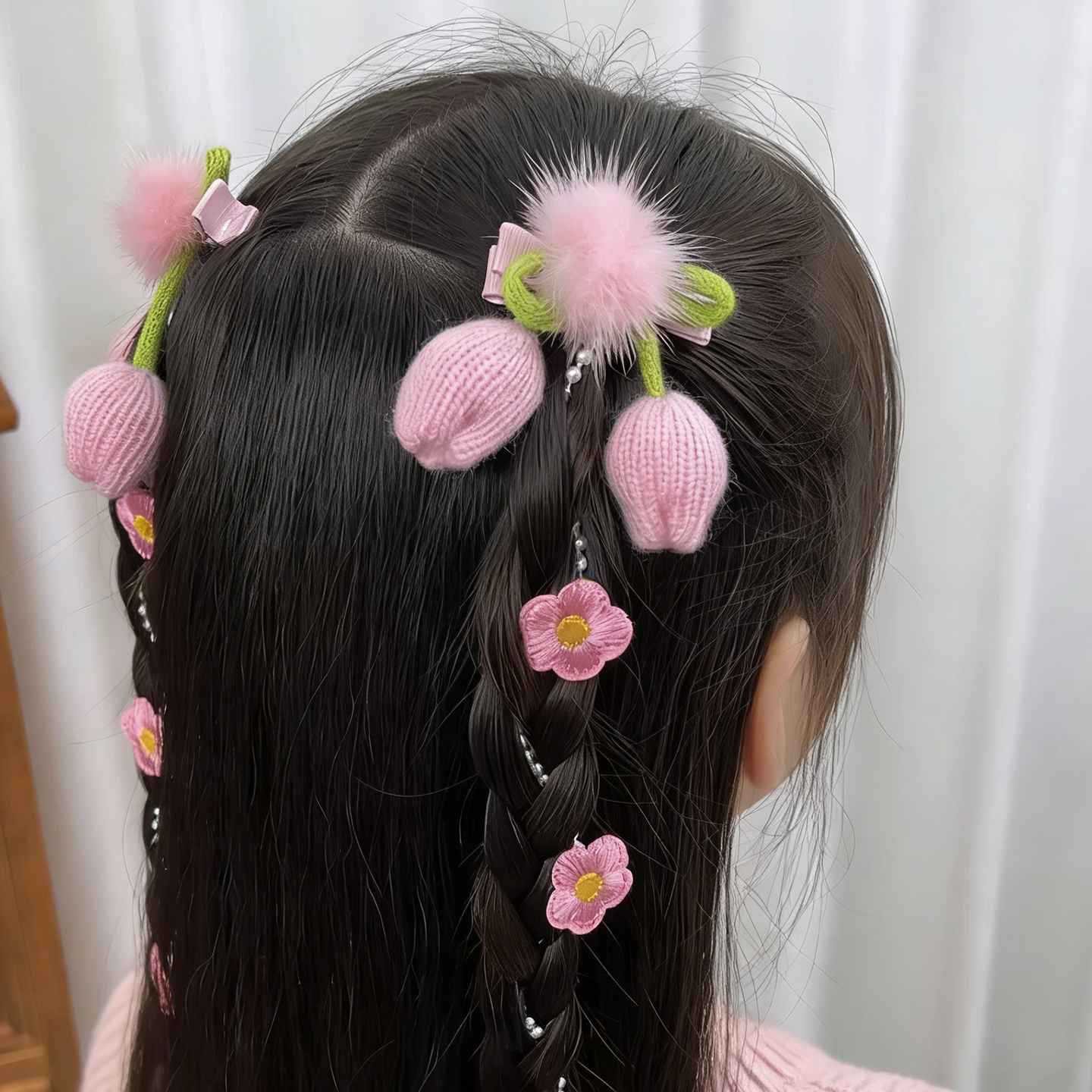 children's all-match flower pearl braided hair chain sweet girl pink bow braided hair height horsetail headwear hair accessories