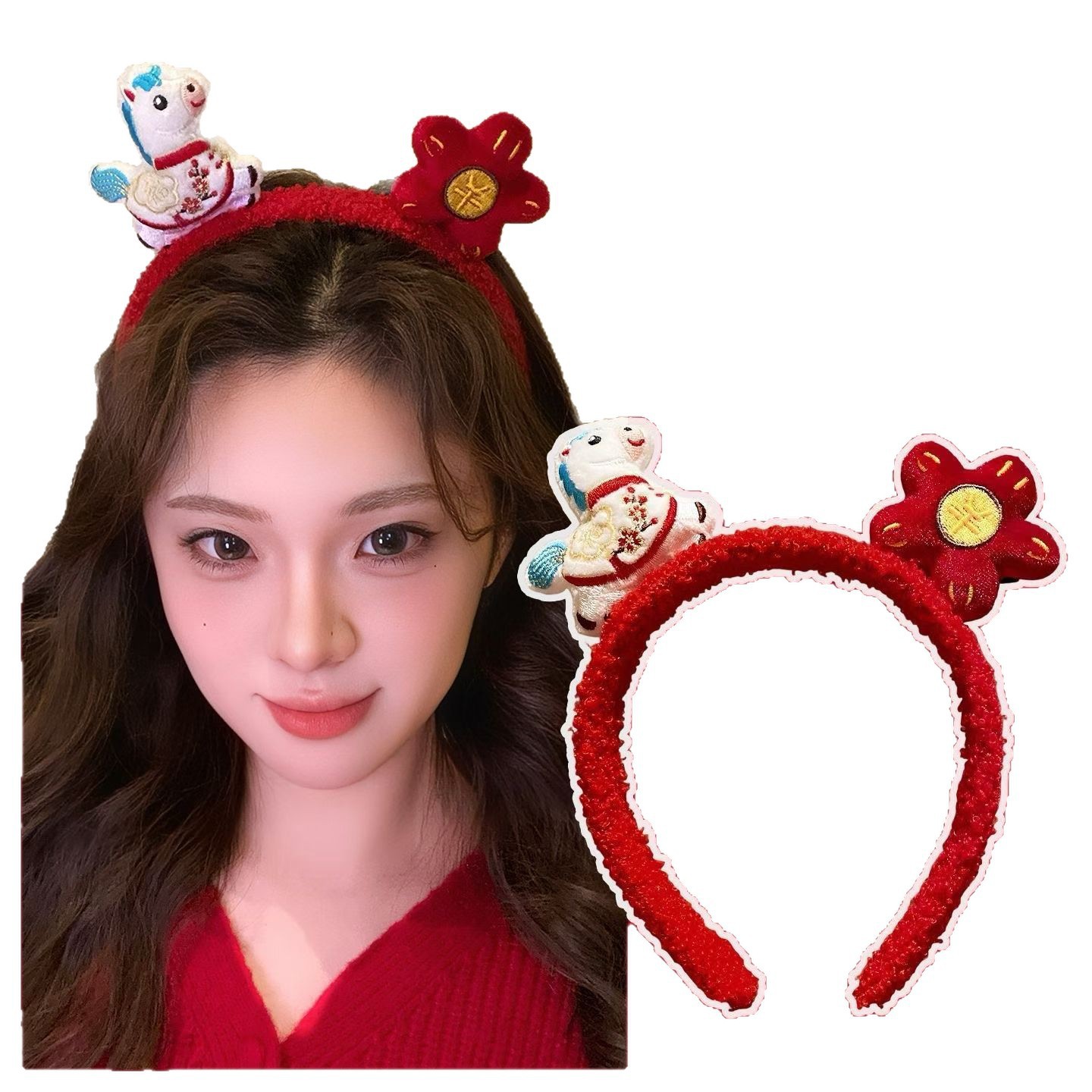 pony red flower headband
