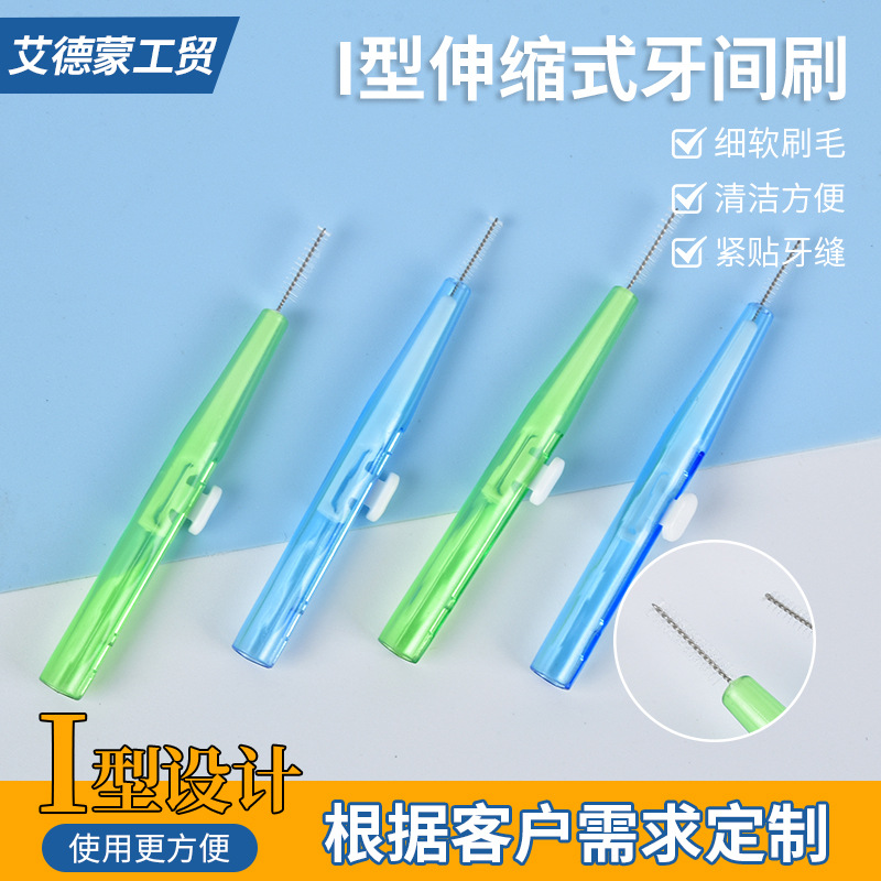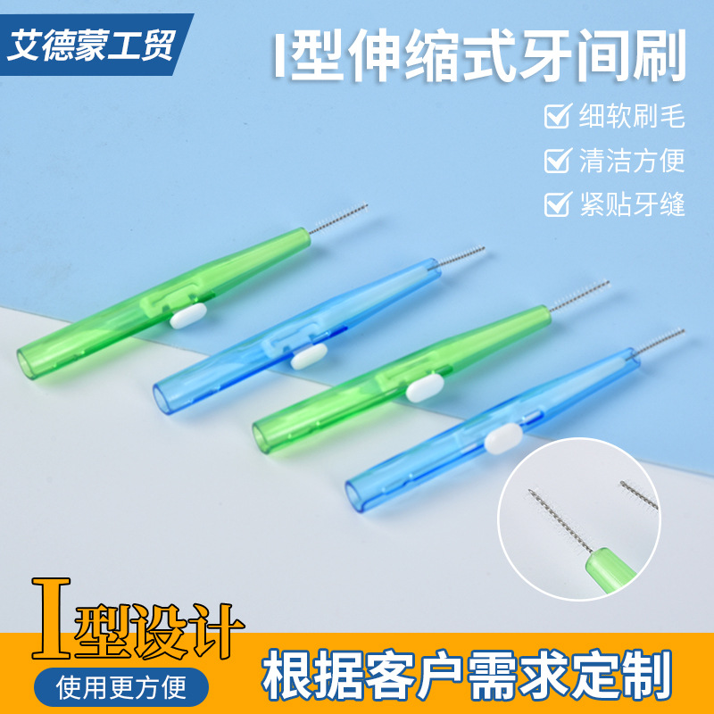 i-type telescopic interdental brush qingdao manufacturer tooth gap brushing line brush bracket toothbrush push-pull interdental brush