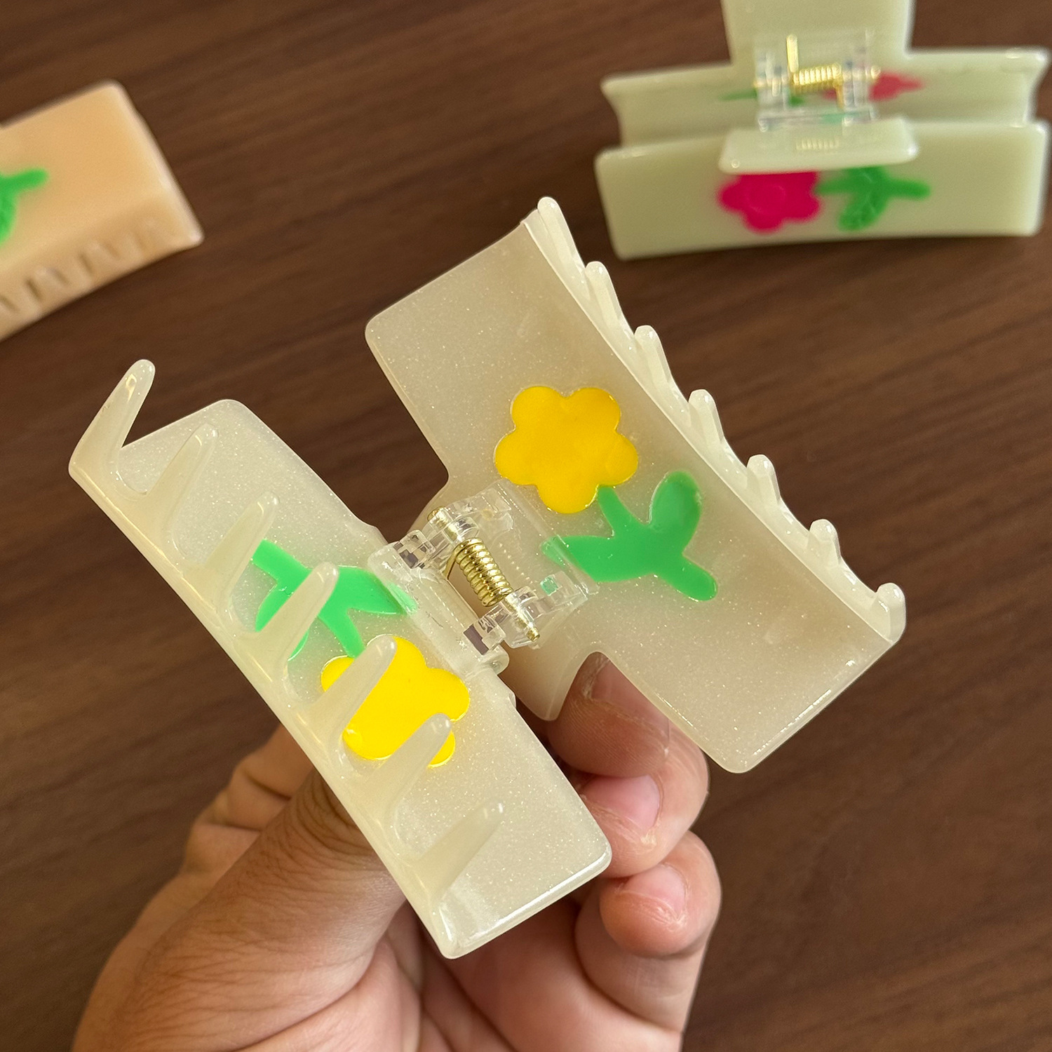 imitation acetic acid color-blocking flower grip cute small square barrettes color matching shark clip dopamine hair accessories updo hair clip barrettes