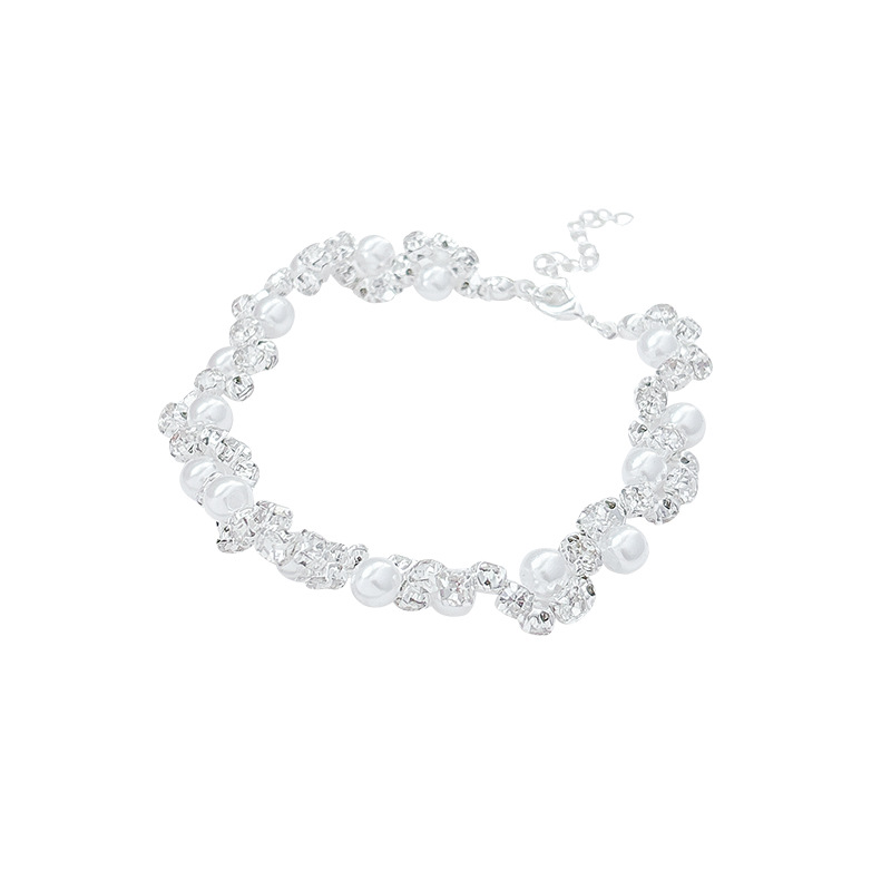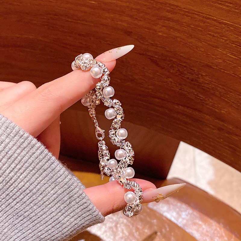 elegant graceful irregular broken silver pearl bracelet light luxury delicate bead-set diamond all-match bracelet retro high-grade bracelet