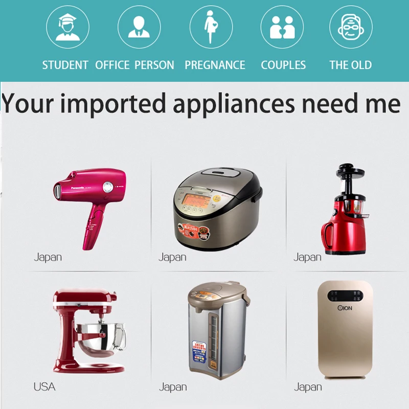 1. It is mainly suitable for 220V to 100V/110V electrical appliances. The output voltage with dual output sockets can be selected! 2. Precise input voltage selection according to the country where it is being used. 3. Input voltage selector: 110-V-120V-220V-240V can customized 4. Output: 110/220 volt can customized. 5. Suitable for Nikko rice cookers, hair dryers, horse figurines, American juicers, speakers and more! 6. SDK step up&down voltage electrical transformer