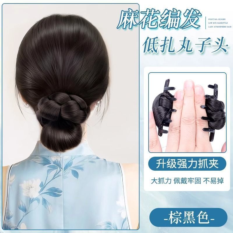 [texture braided bun] dark brown