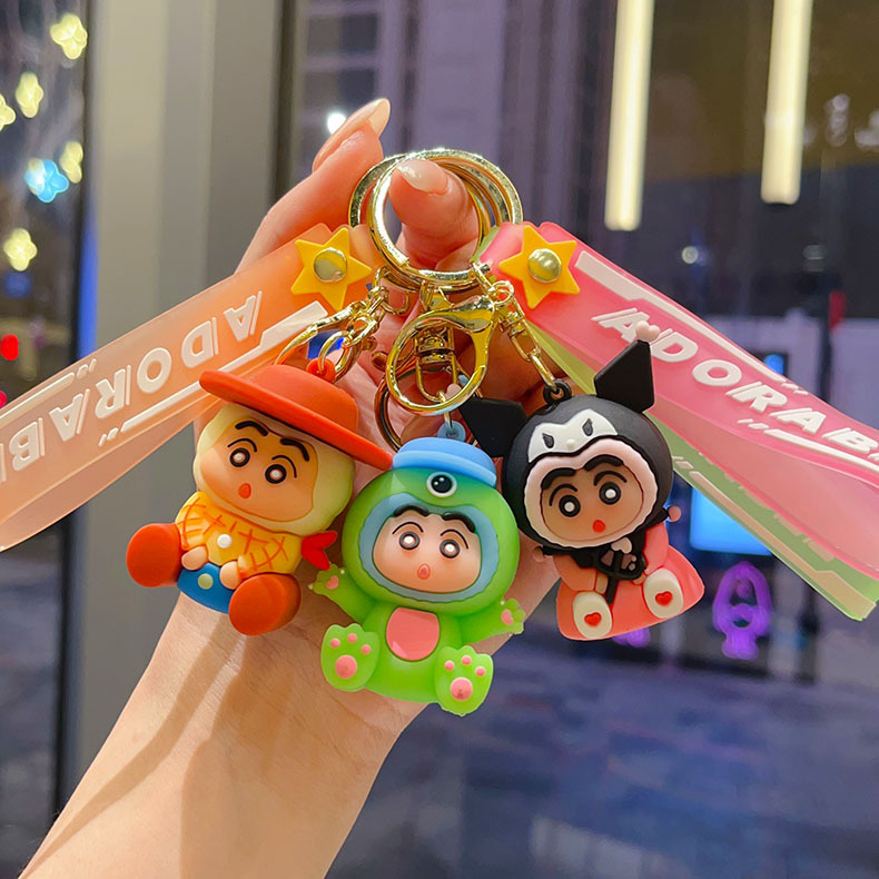 cartoon crossdressing crayon small new keychain cute doll pendant schoolbag car pendant doll small gift wholesale