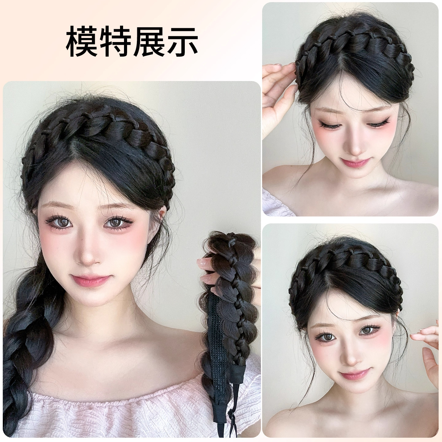 magnetic hook and loop fishbone plaits [natural black]]