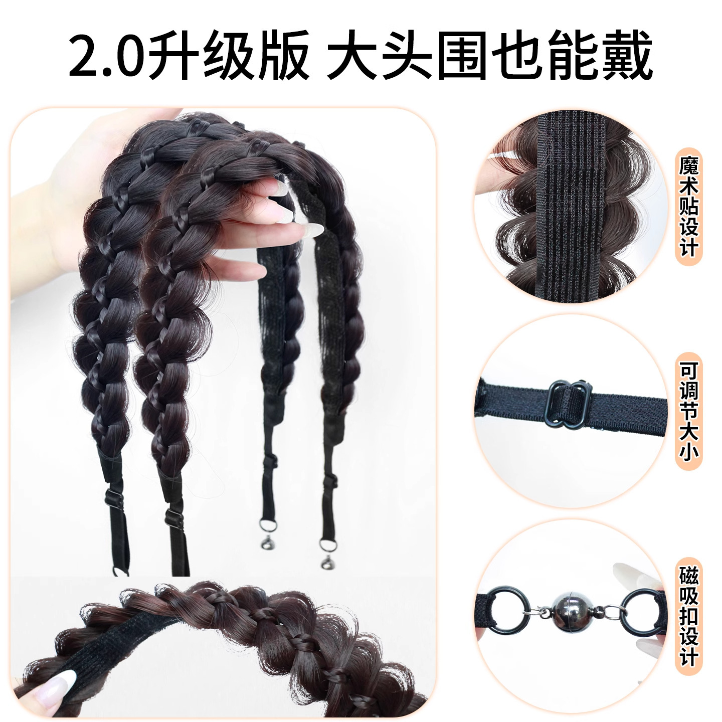 magnetic velcro fishbone plaits [brown black]]
