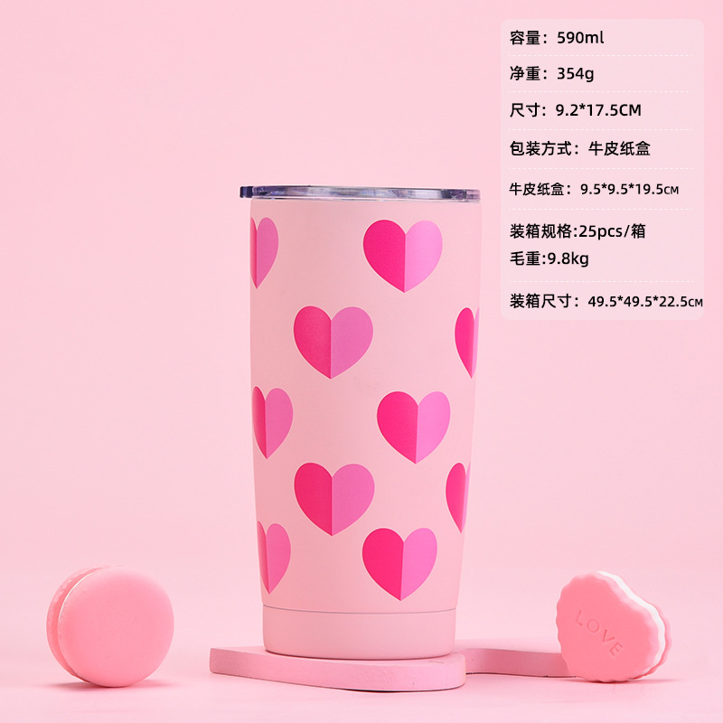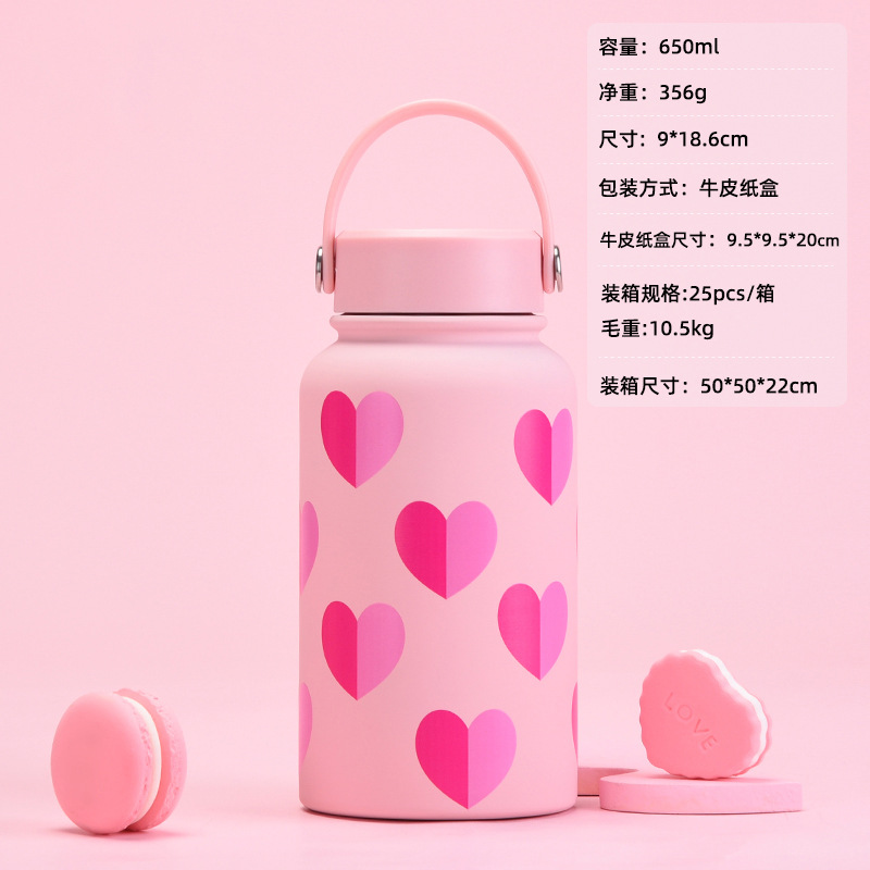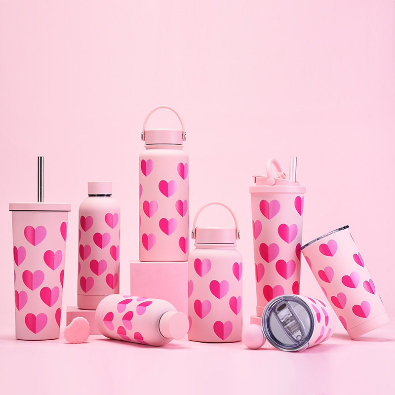 new stainless steel thermos cup with straw milky tea cup coffee cup valentine's day set portable handle sports cup