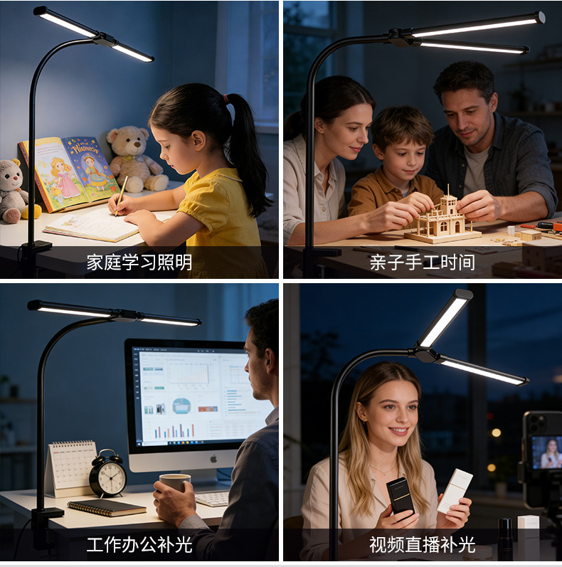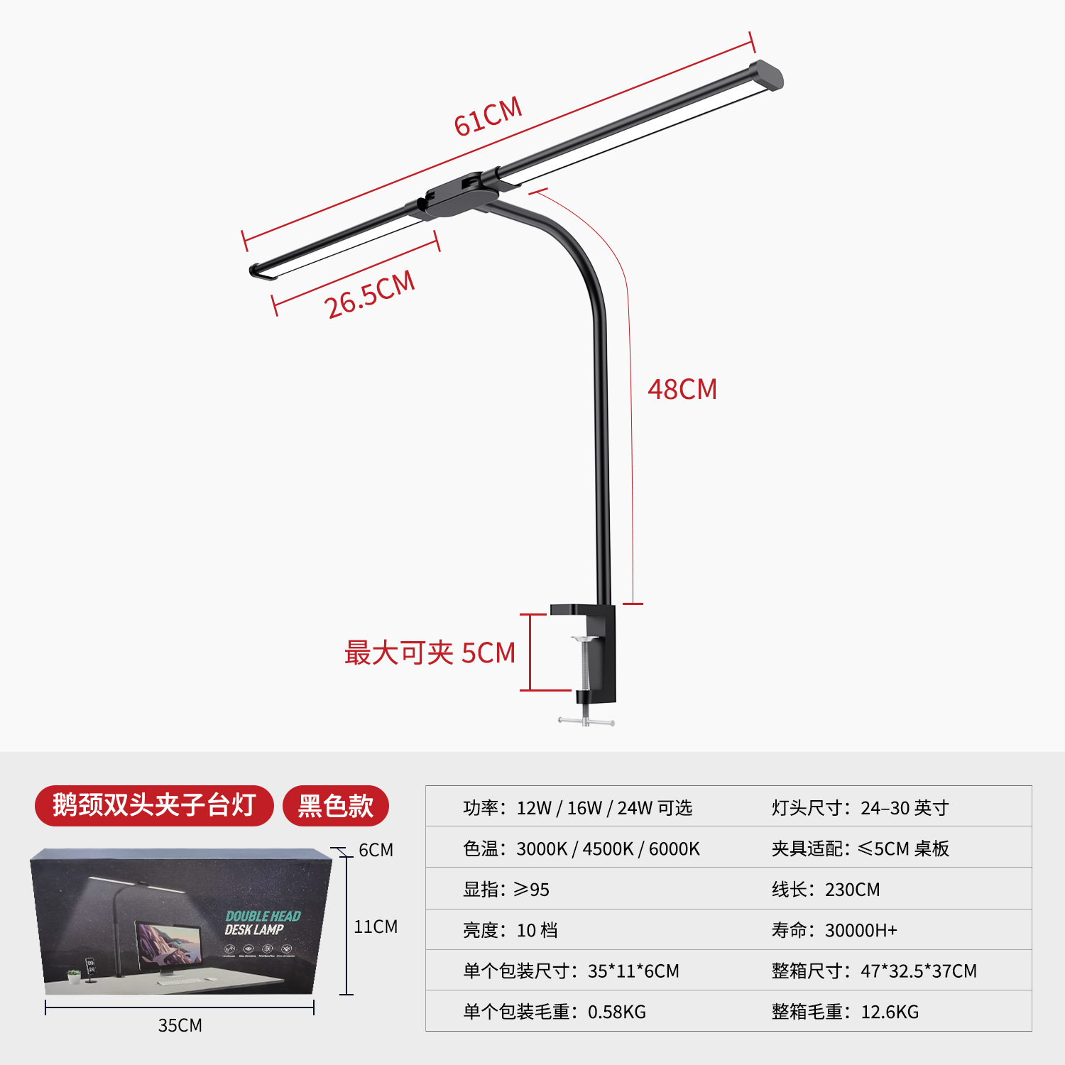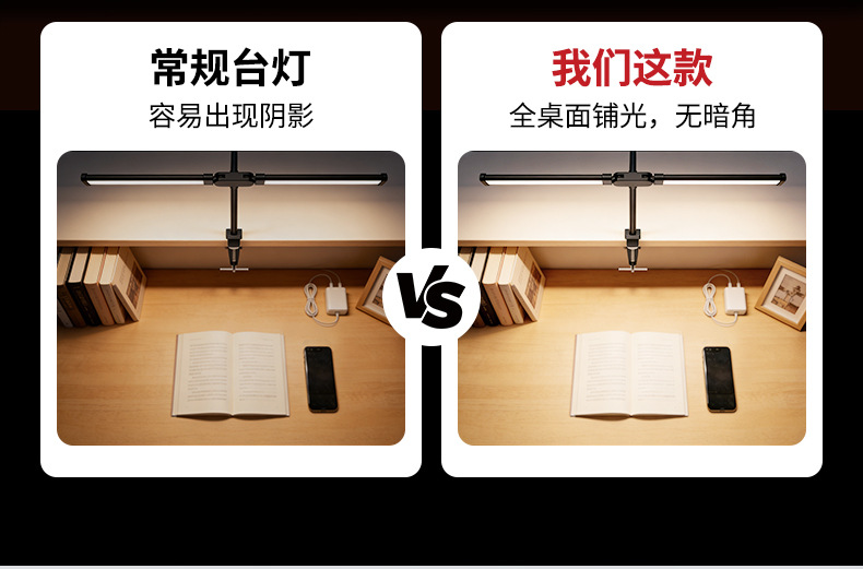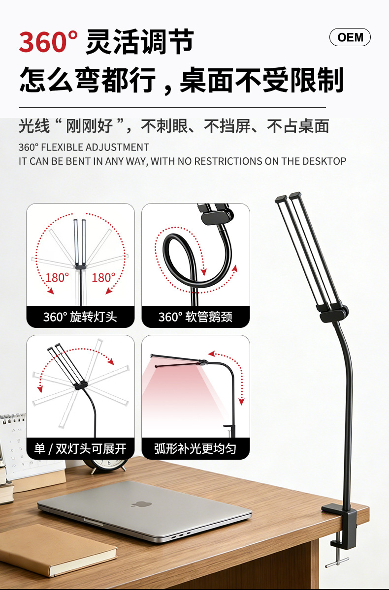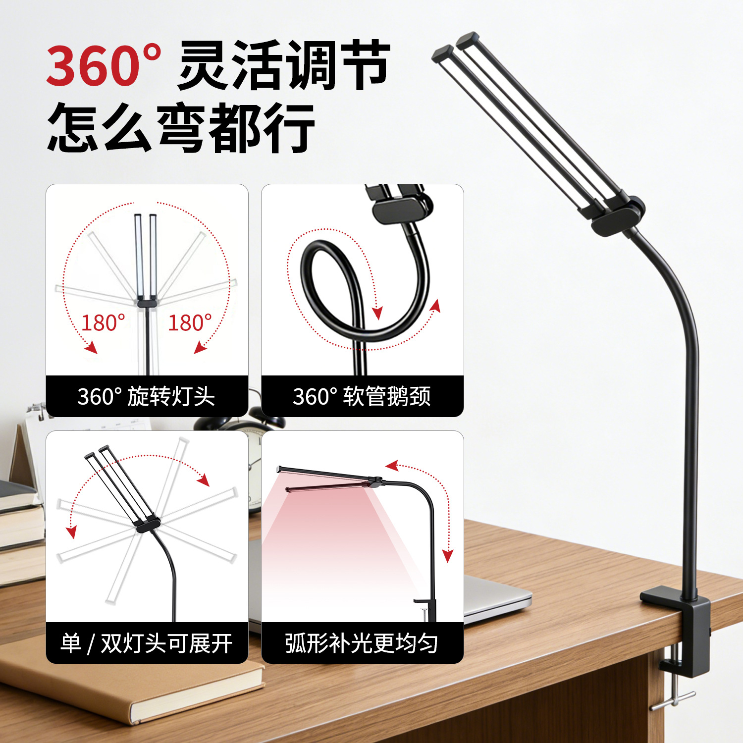 [the lamp holder can rotate 360 degrees] [super long 61cm lamp holder full desktop coverage + new material upgrade] double-headed clip lamp black