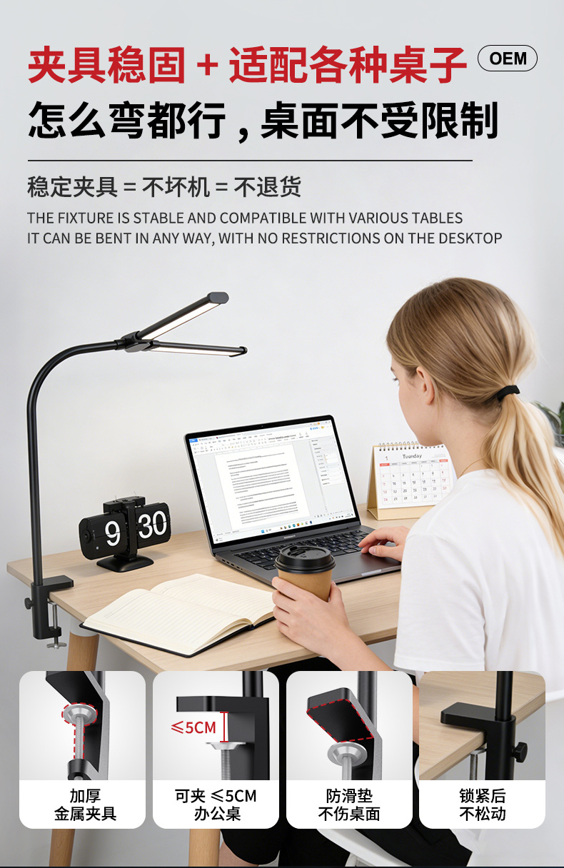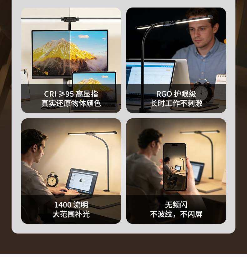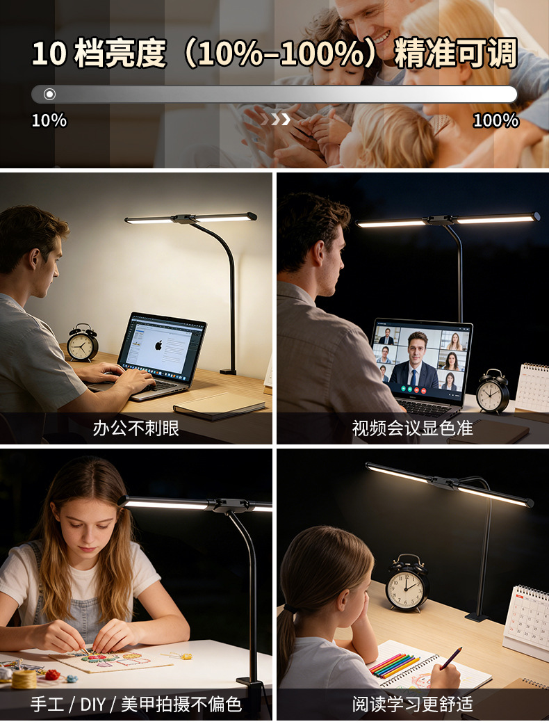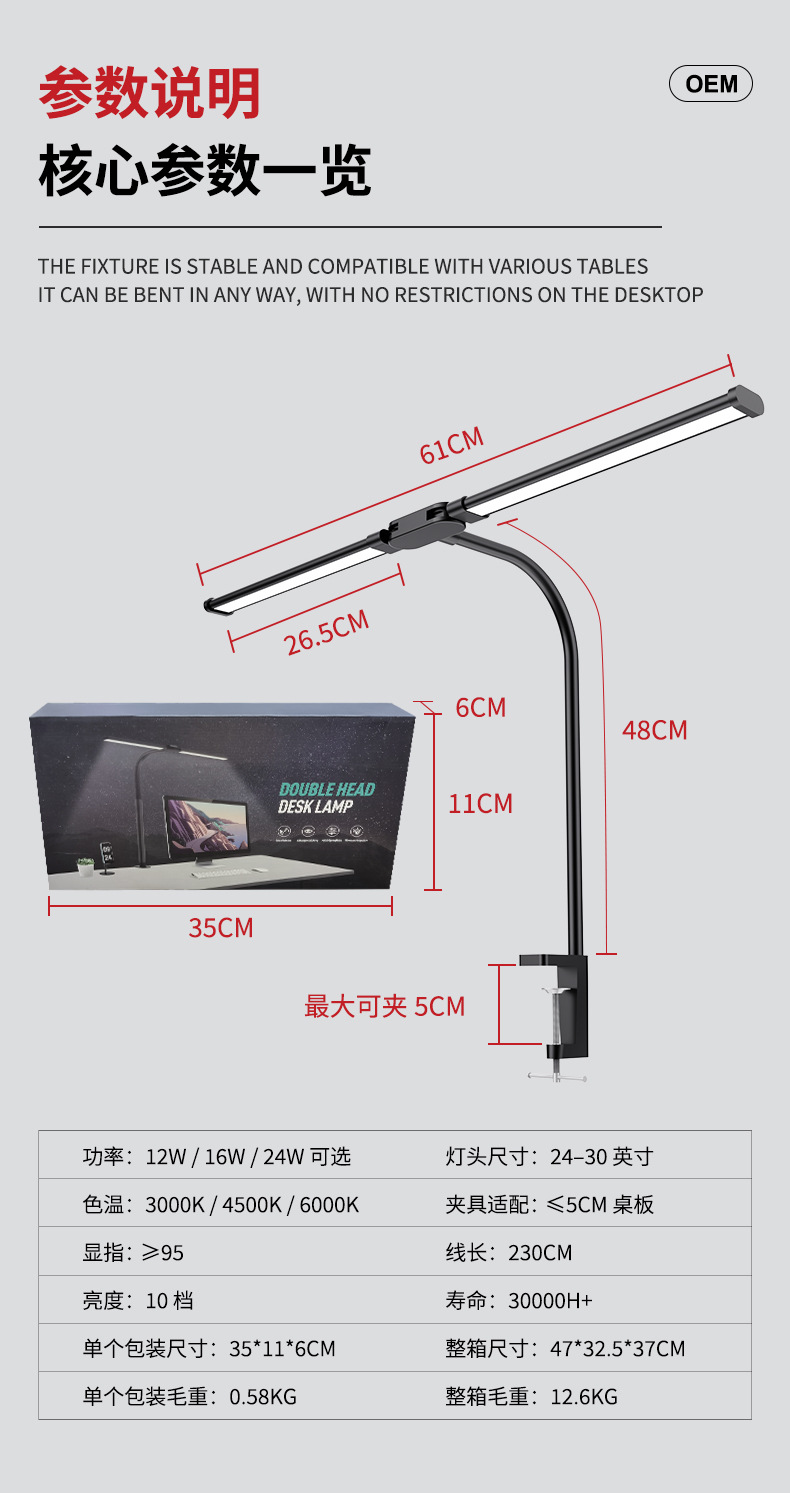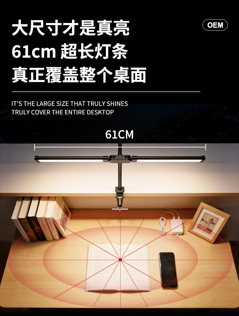 [the lamp holder can rotate 360 degrees] [super long 61cm lamp holder full desktop coverage + new material upgrade] double-headed clip lamp black