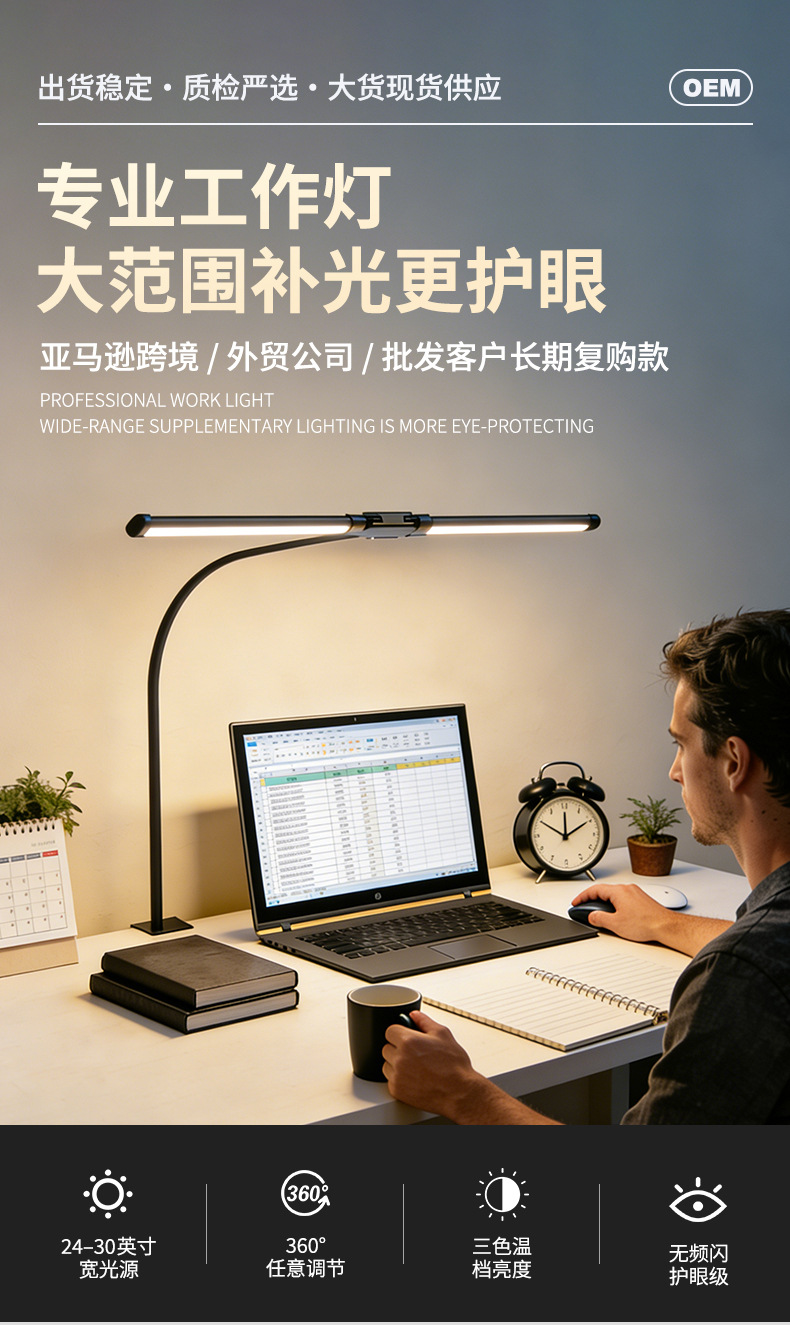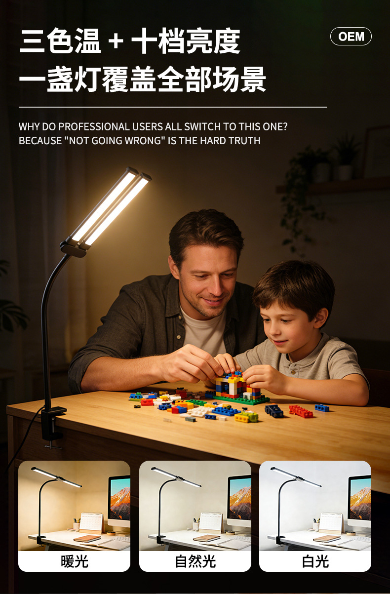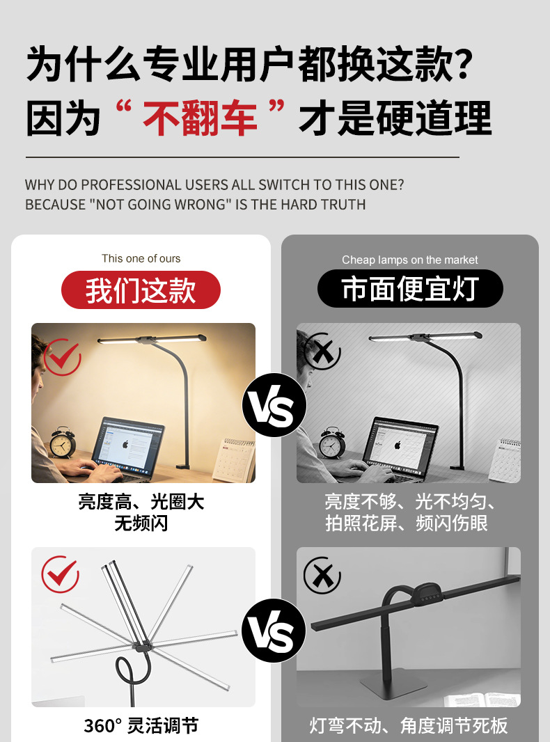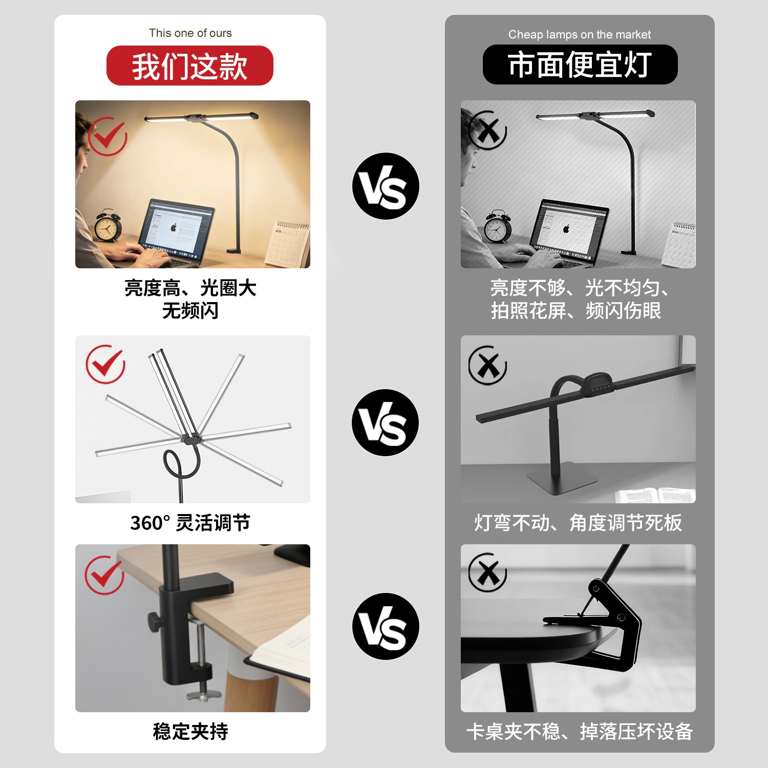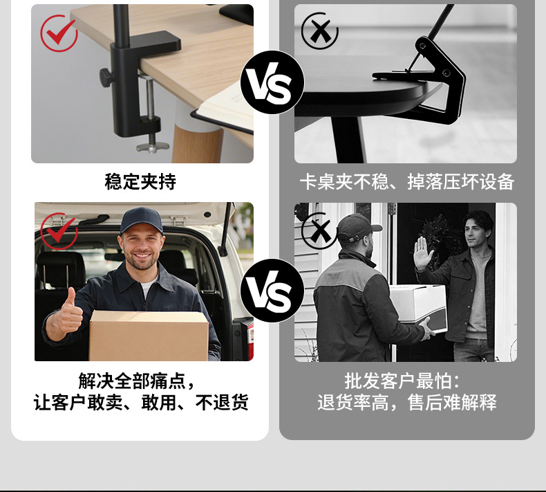 [the lamp holder can rotate 360 degrees] [super long 61cm lamp holder full desktop coverage + new material upgrade] double-headed clip lamp black