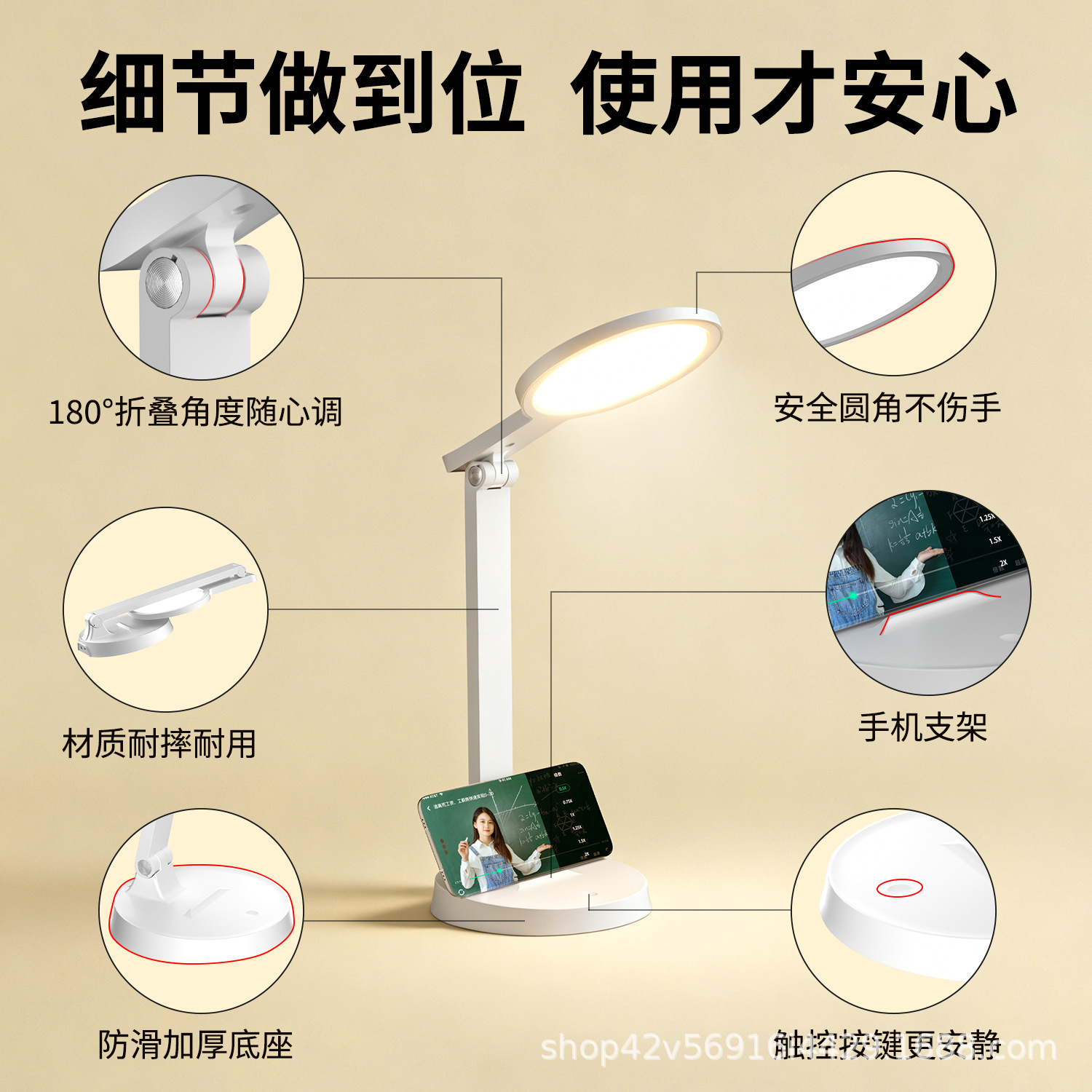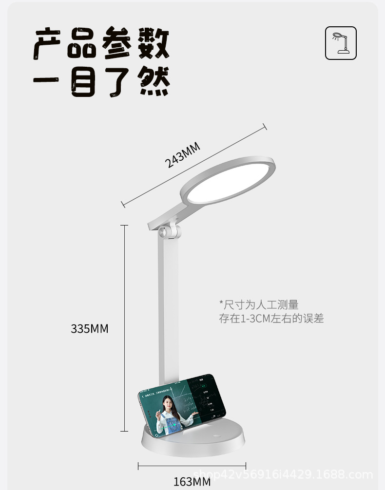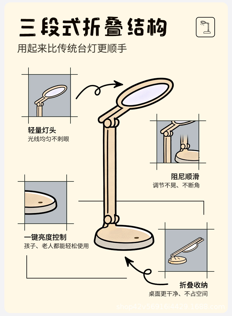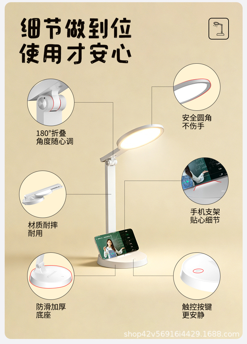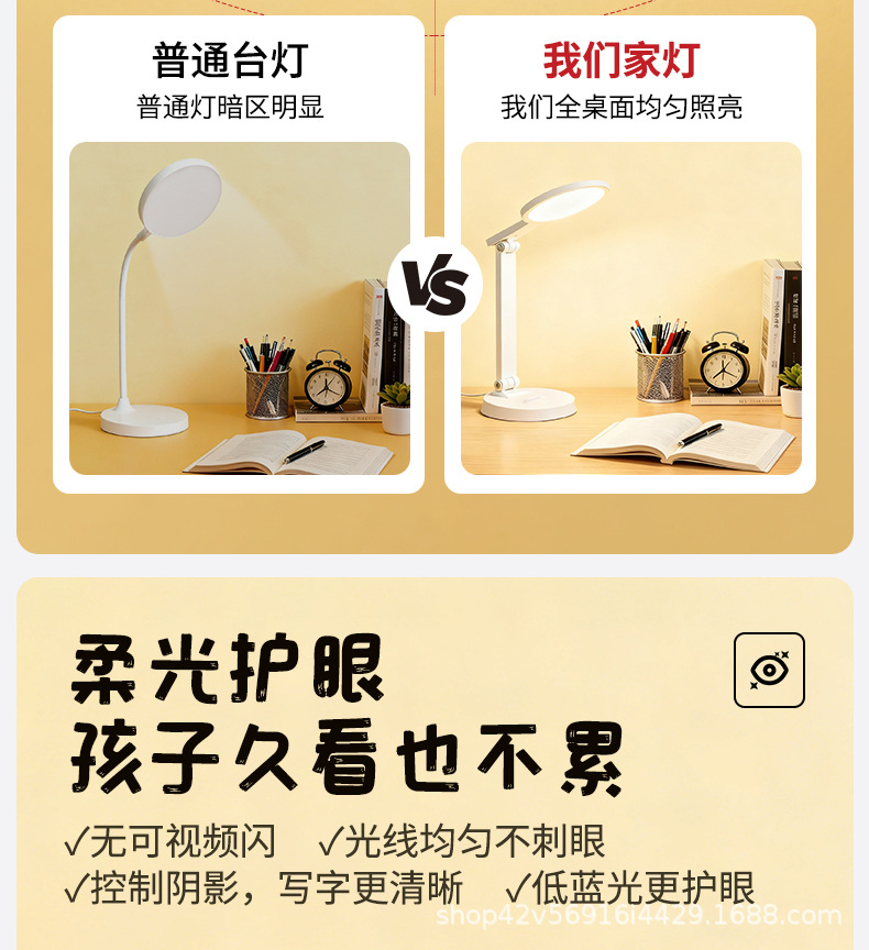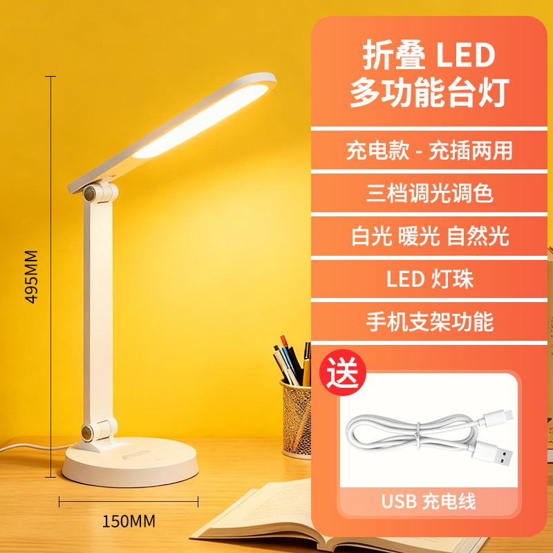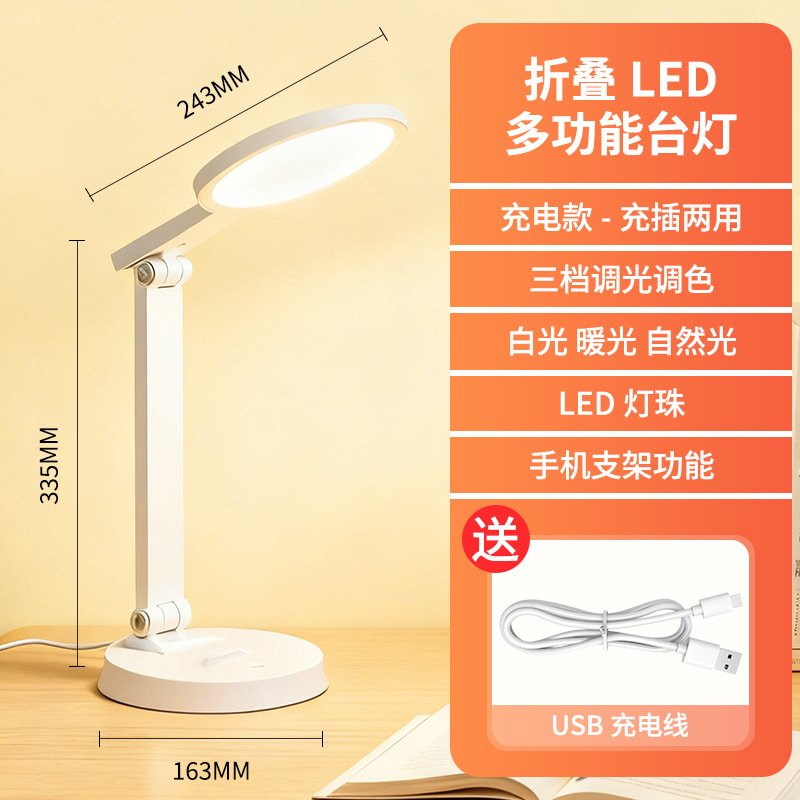 [material upgrade round head] full spectrum + dual-purpose charging and plug-in + three folding + three color light +10 level brightness + national aa level eye protection + non-slip