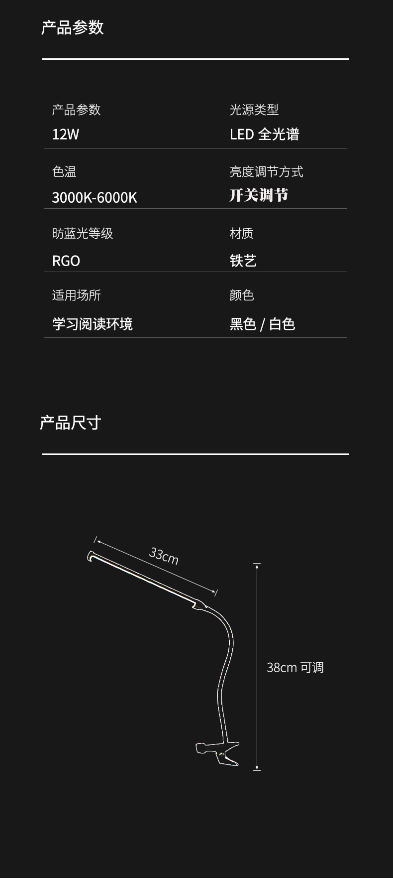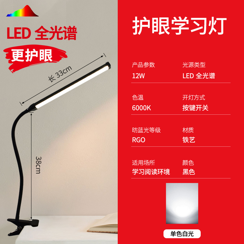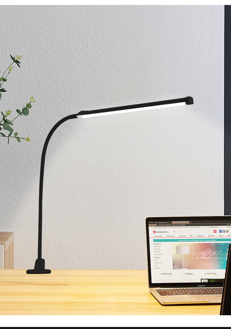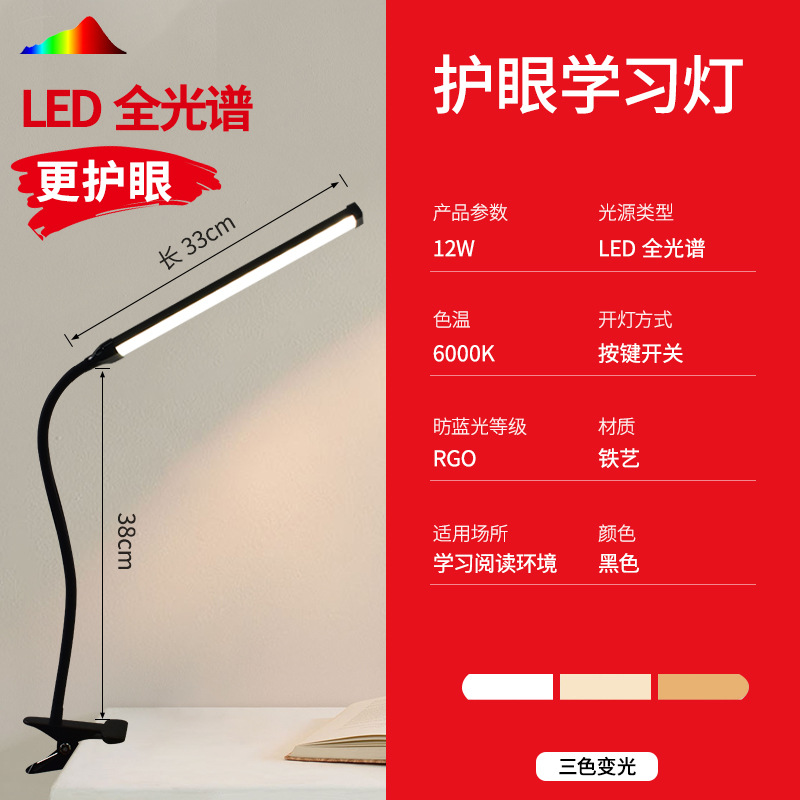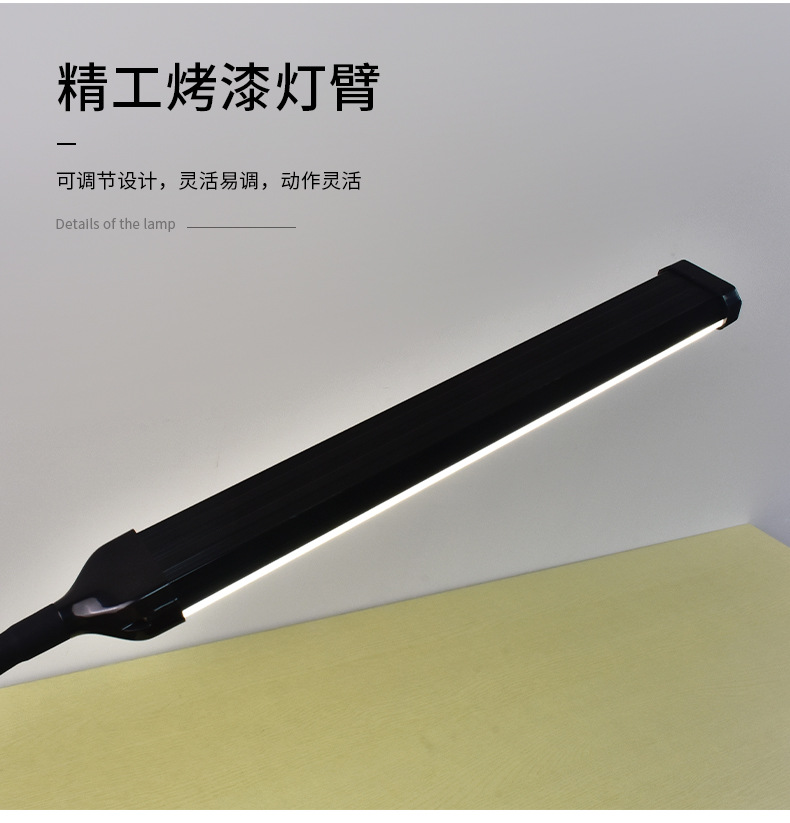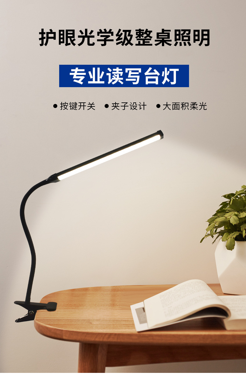 black stick-table lamp with clamp-three-color dimming
