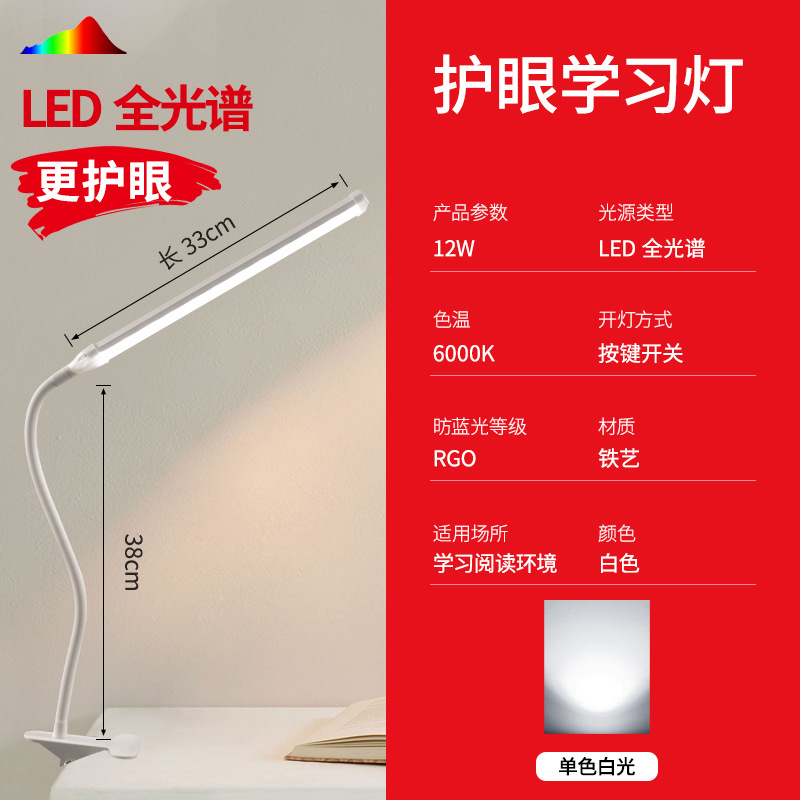 white penholder-table lamp with clamp-monochrome white light