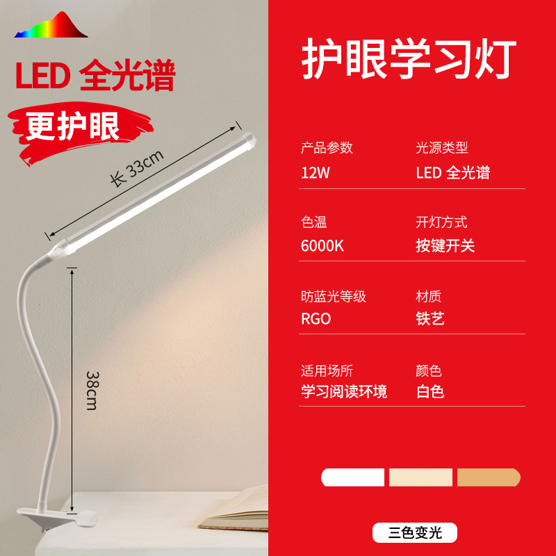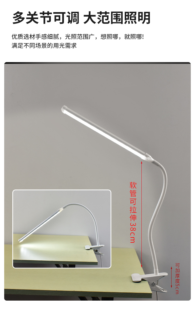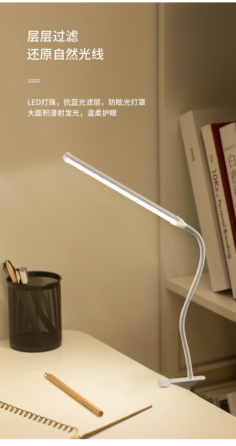 white penholder-table lamp with clamp-three-color dimming