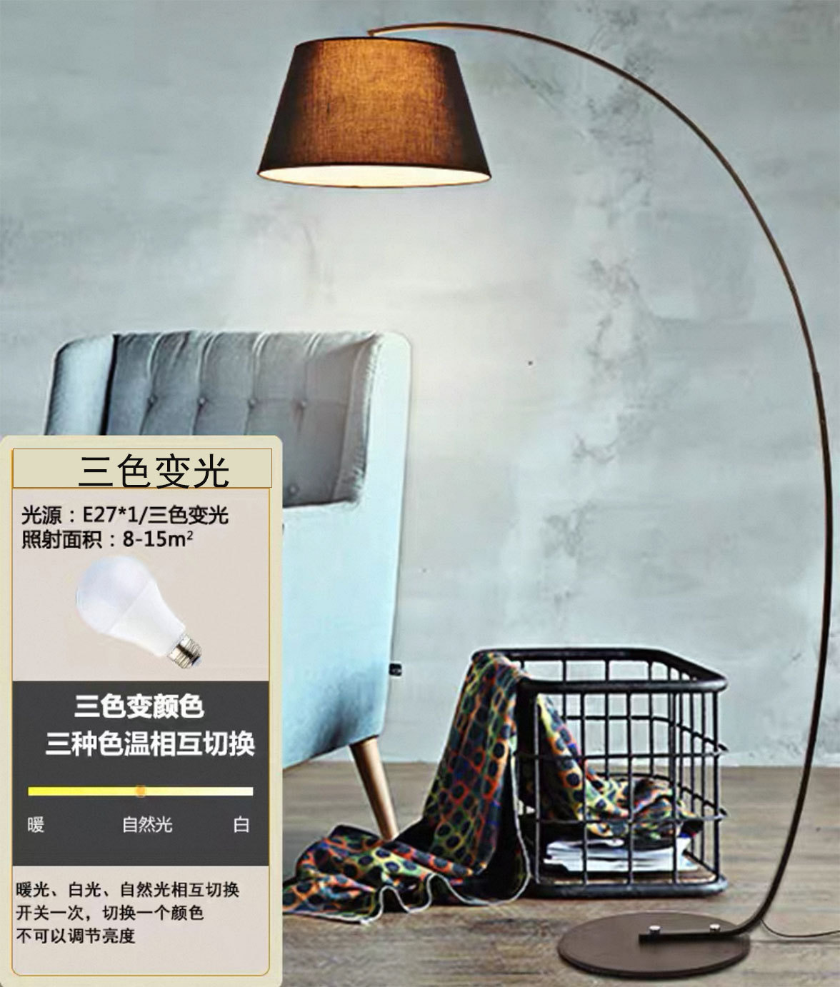 black lampshade-variable light with three colors 12w