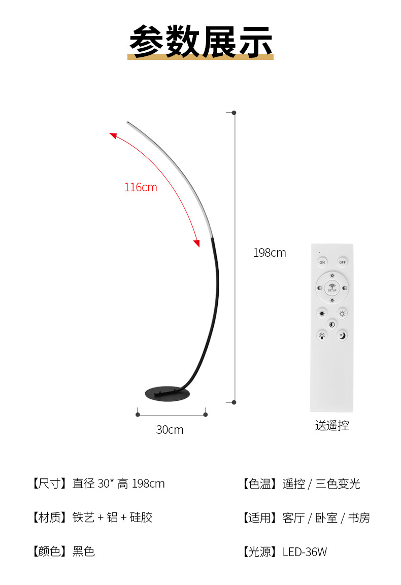 black rod (36w remote control dimmable and adjustable color)