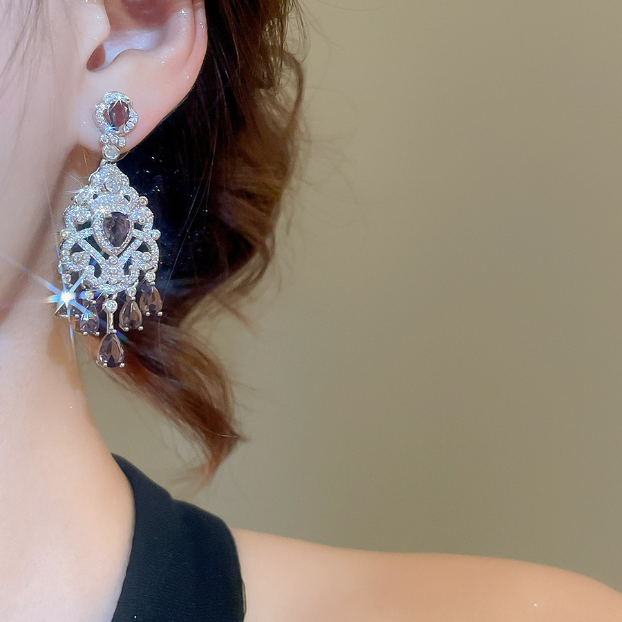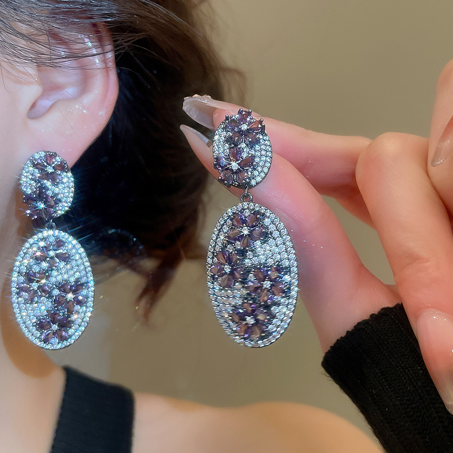 2# silver needle-gun black-purple zircon flower