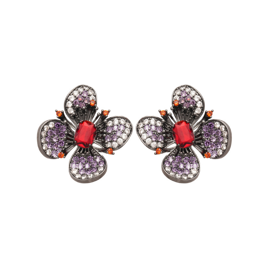 23# silver needle-gun black-purple-green zircon flower