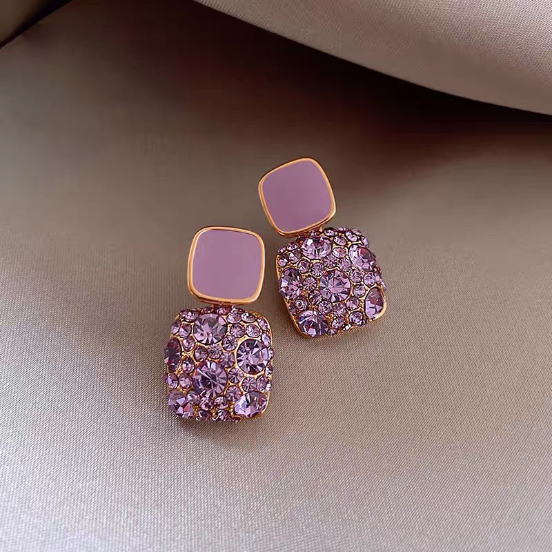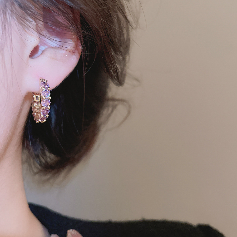 6# ear hook-golden-purple diamond love heart