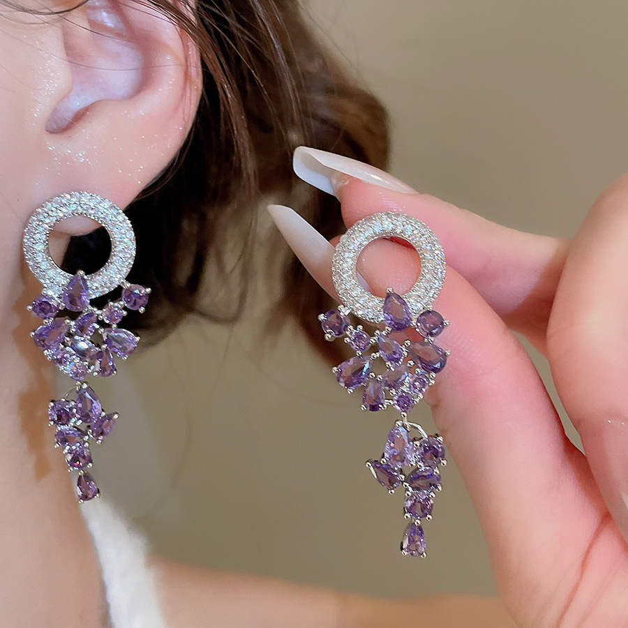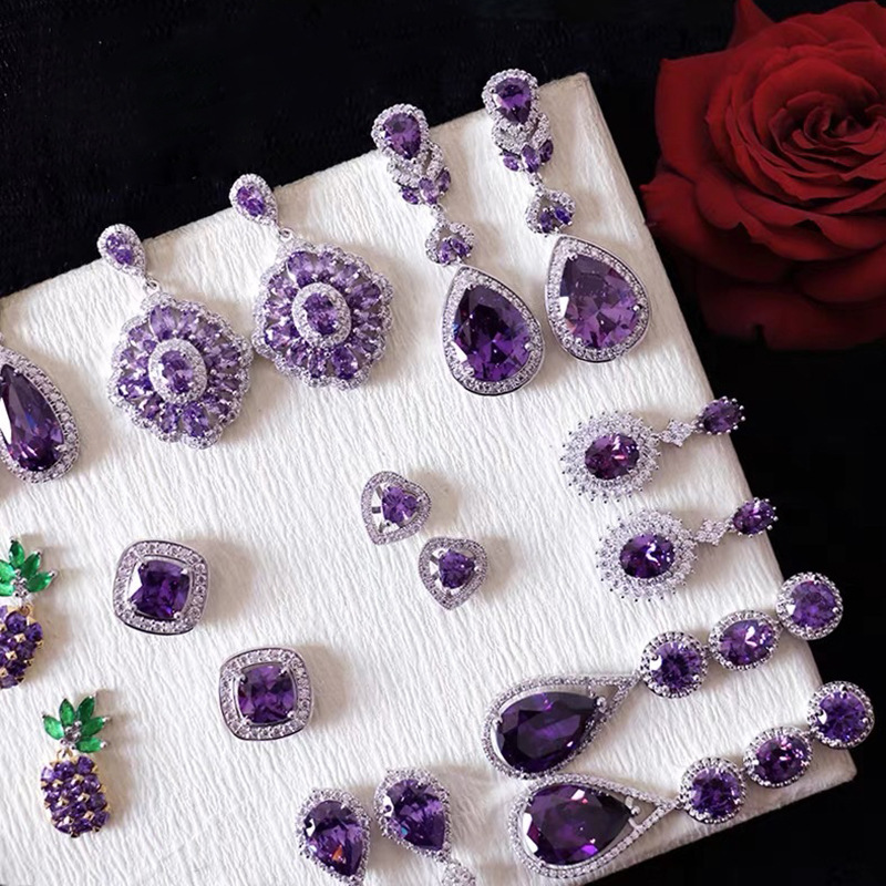 10# silver needle-purple zircon flower