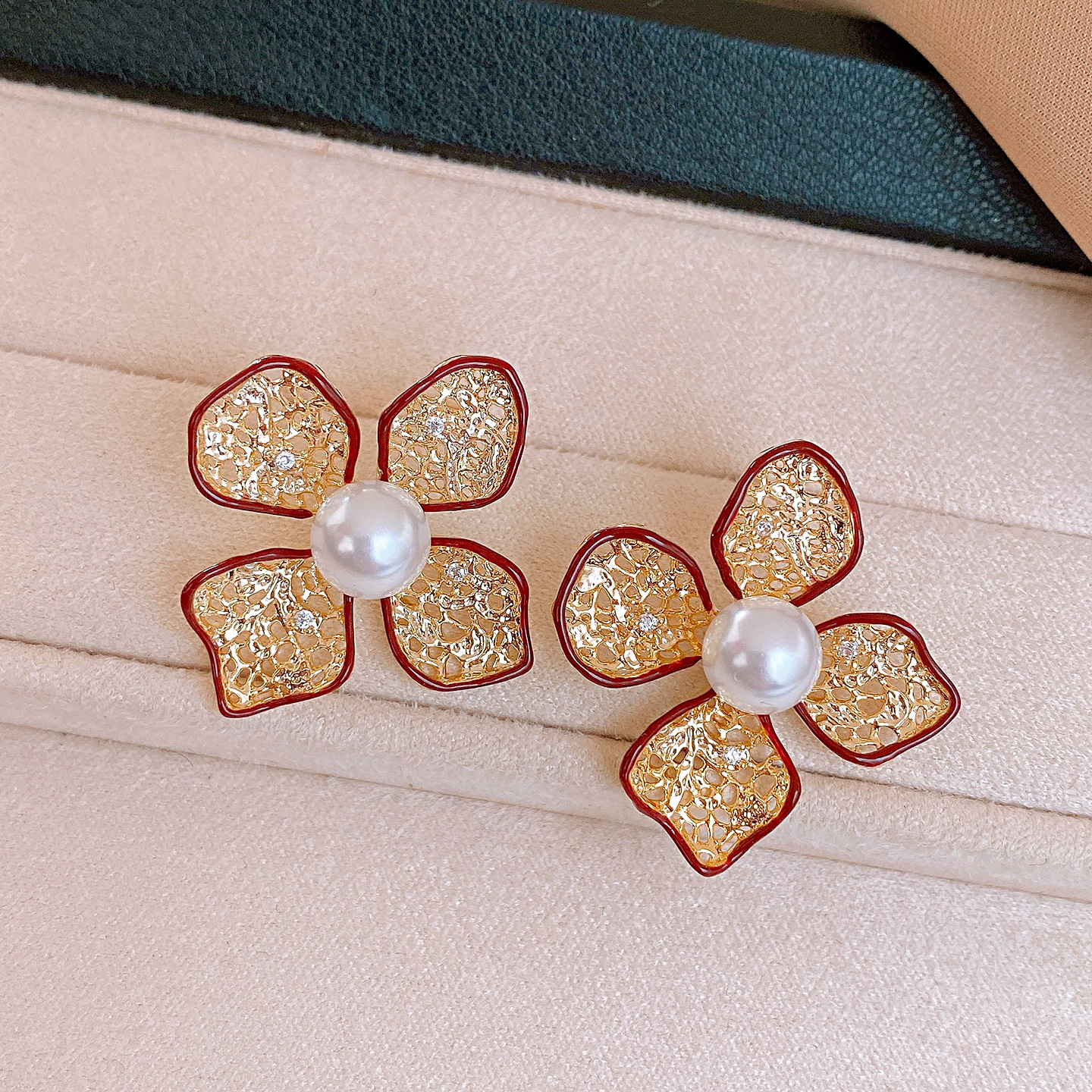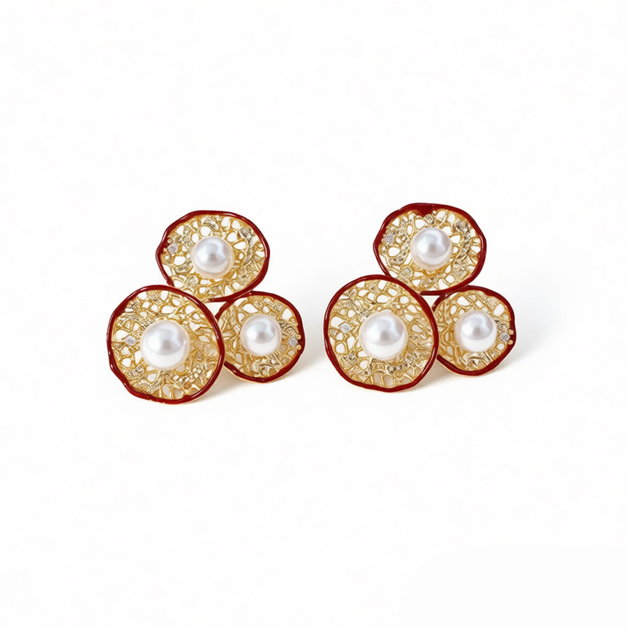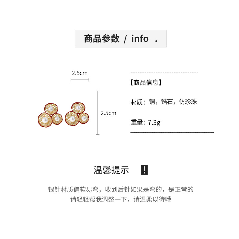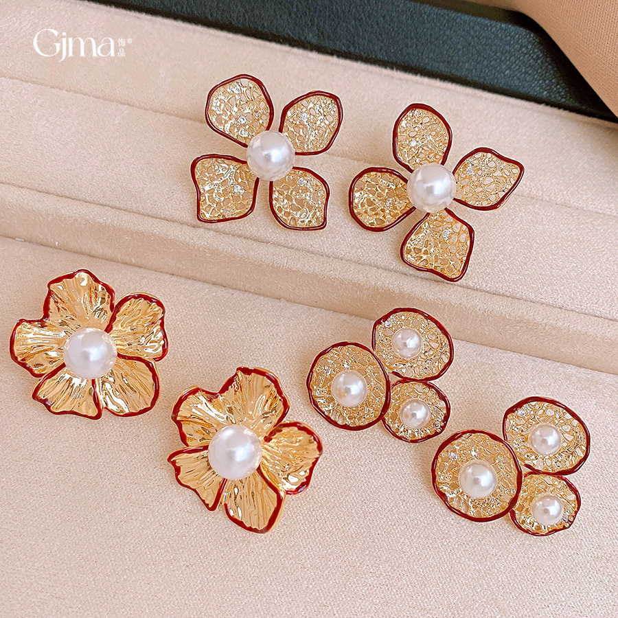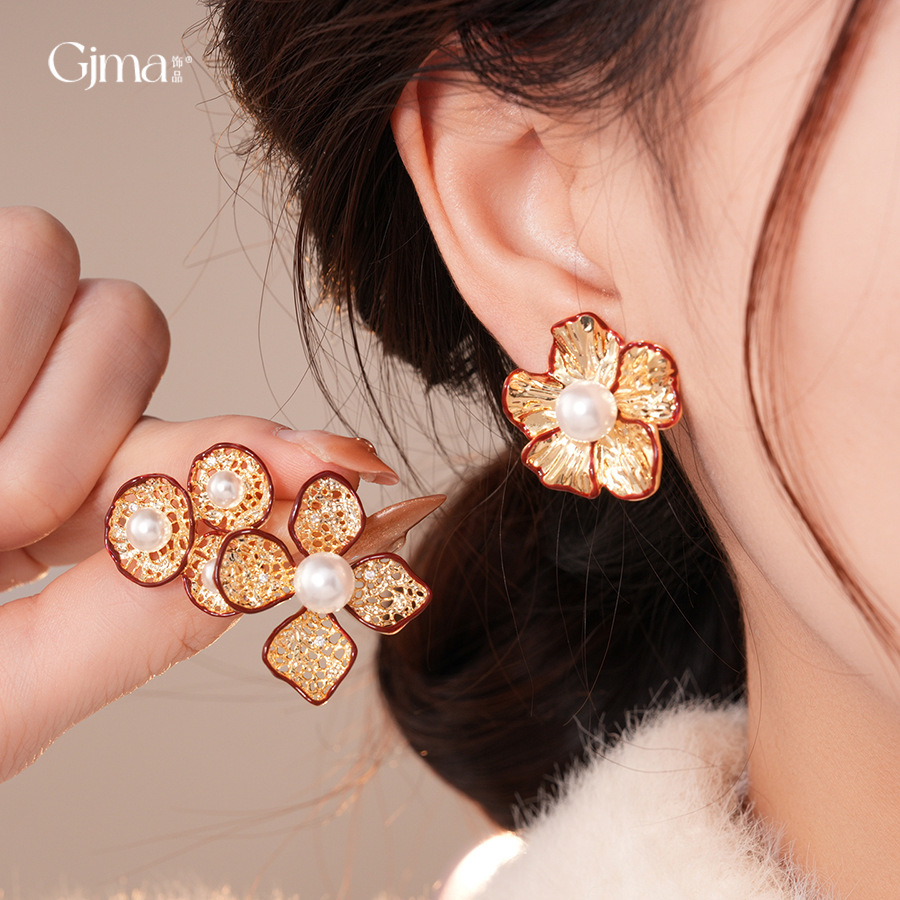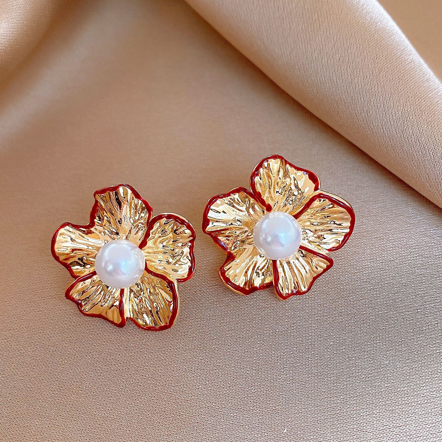 silver needle-golden-red-flower (real gold plating)