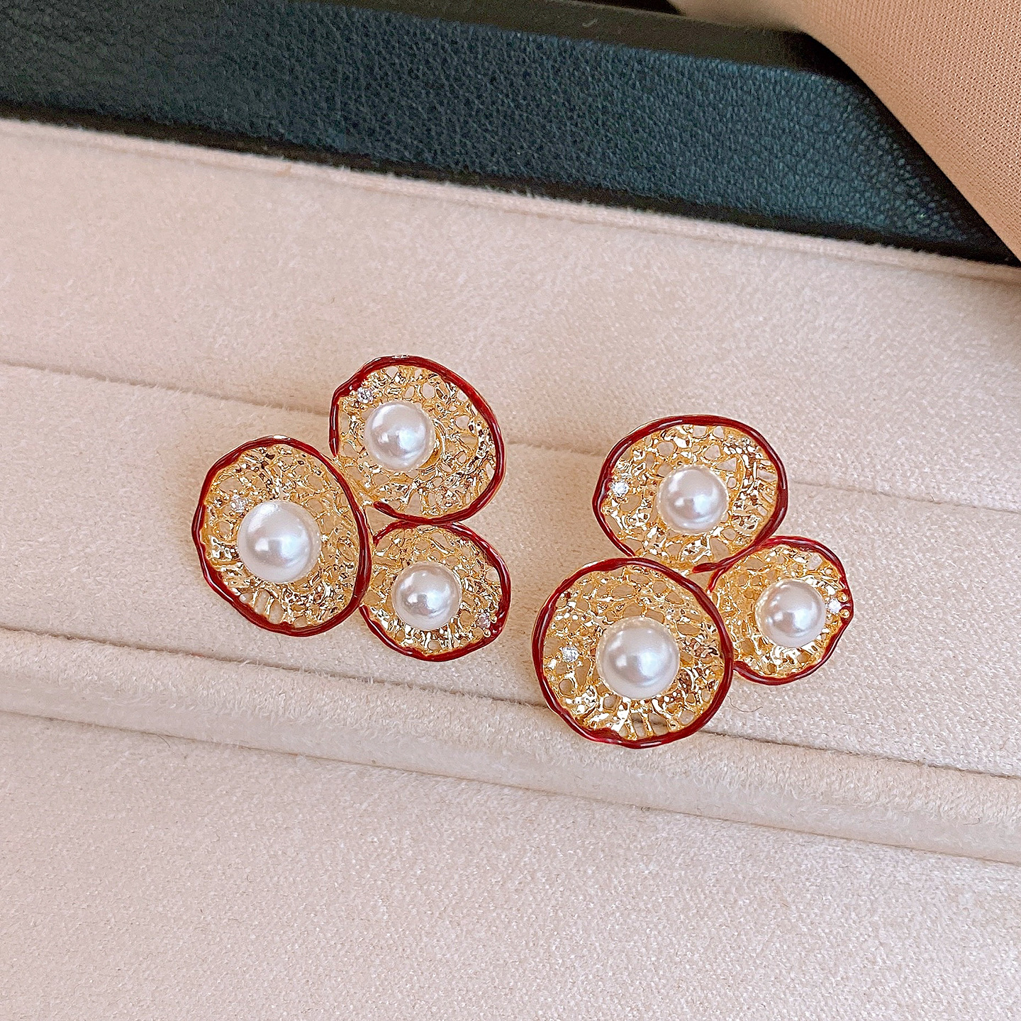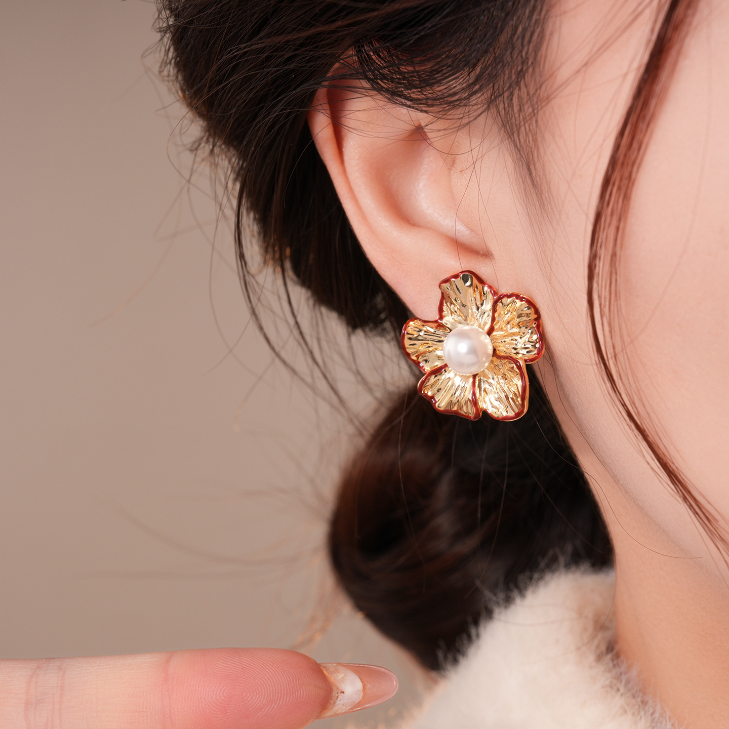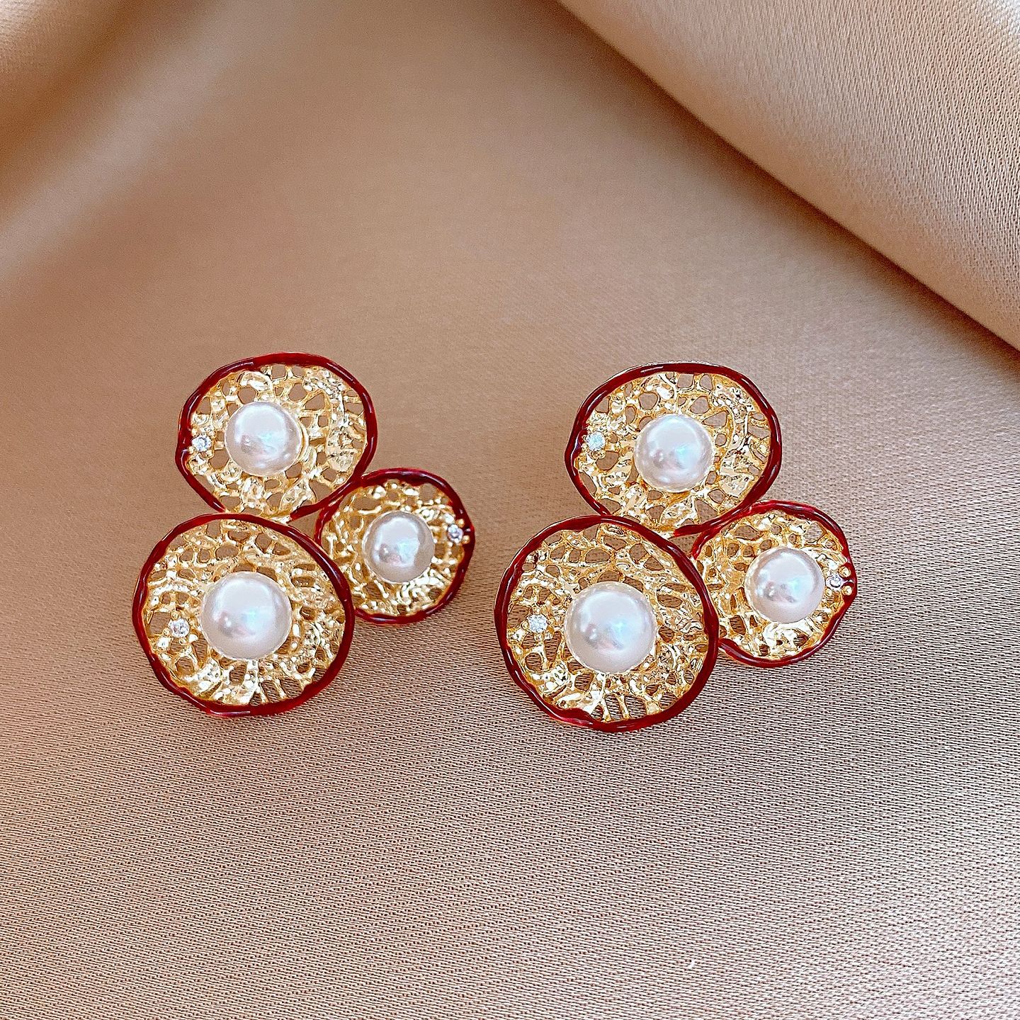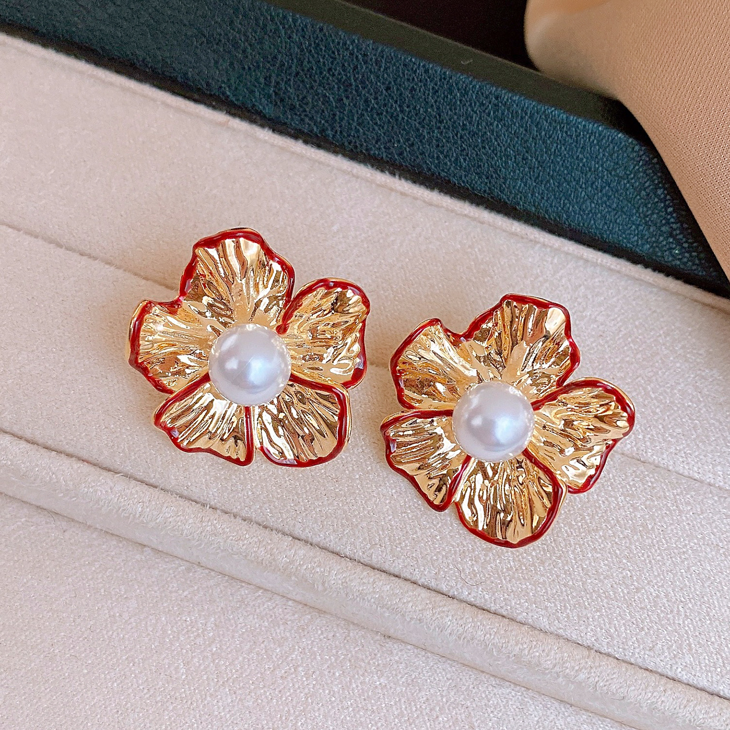 silver needle-golden-red-flower (real gold plating)