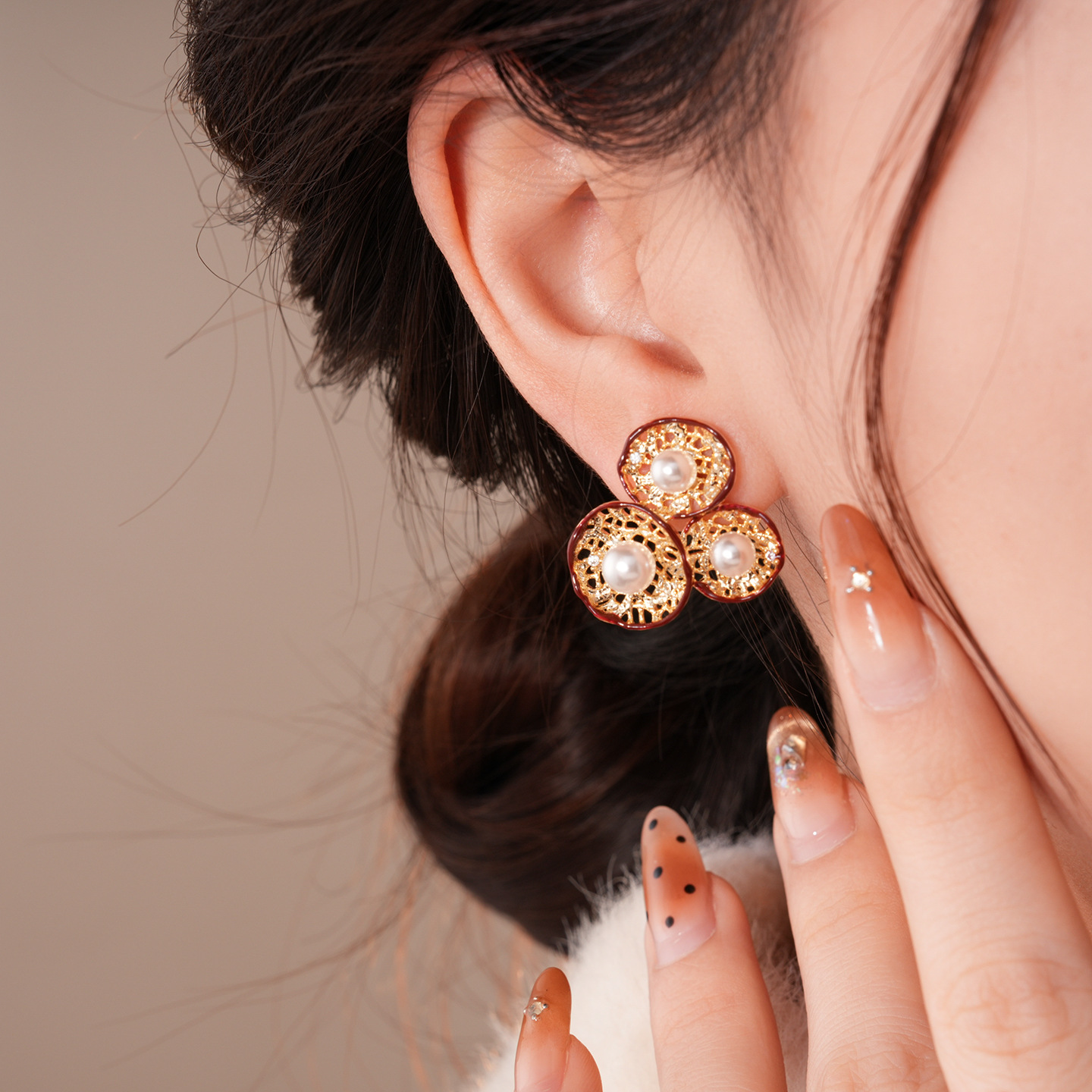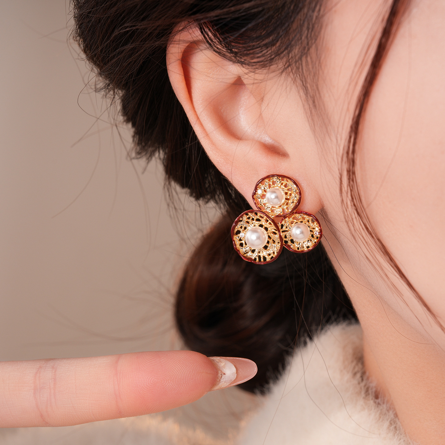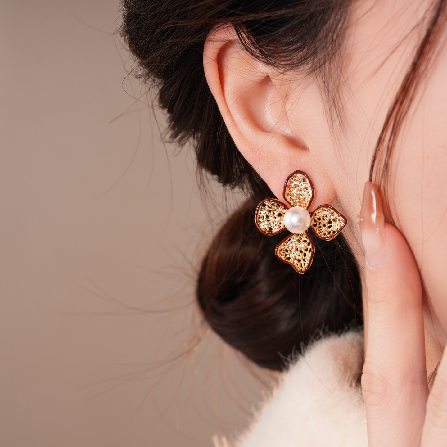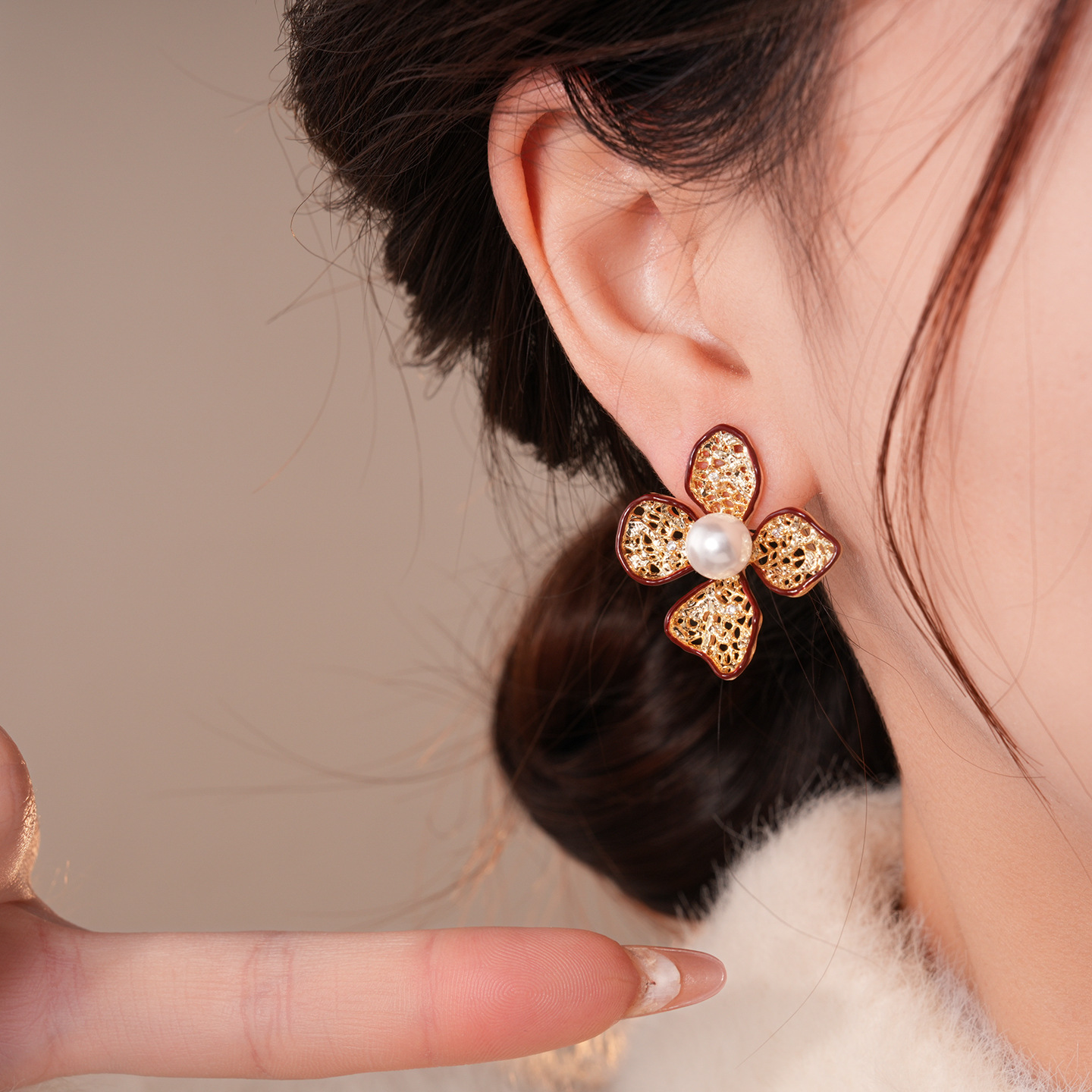 silver needle-golden-red-flower (real gold plating)