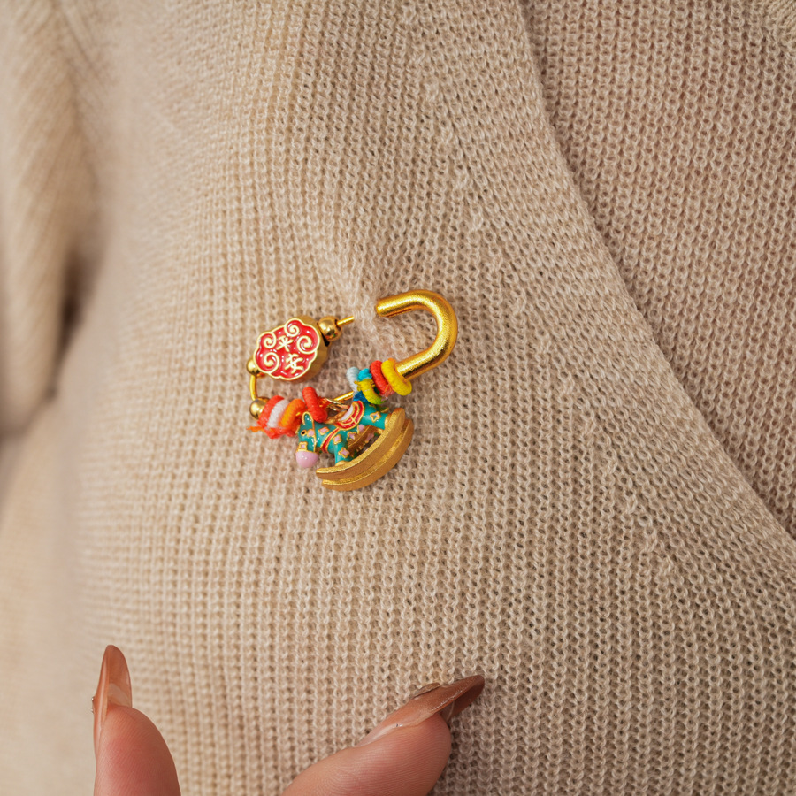brooch-alluvial gold-exquisite gift box-green pony