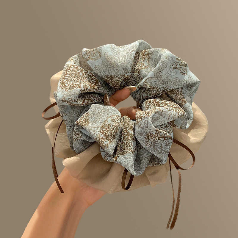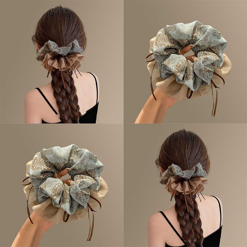 high-grade vintage floral ribbon large intestine hair band for women 2025 new ponytail bun large rubber band hair rope