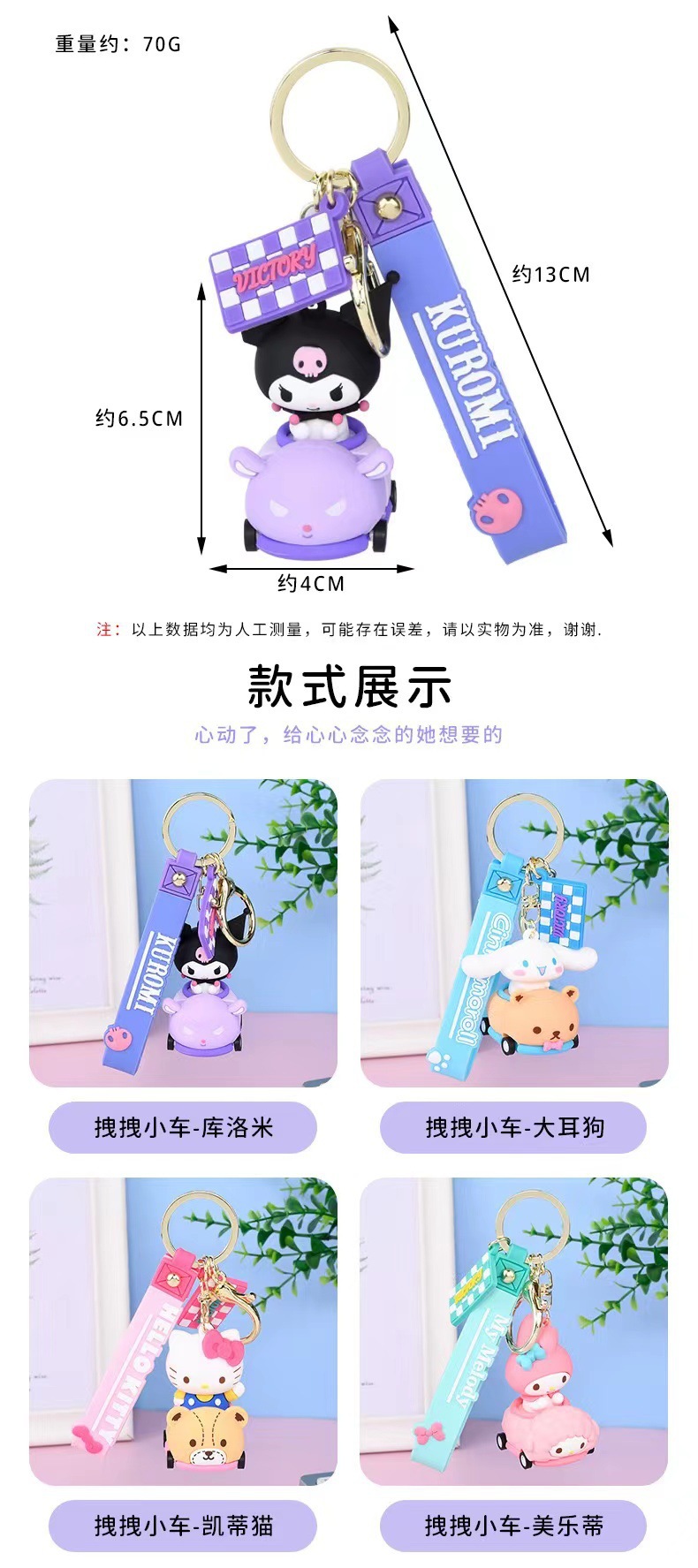 cartoon sanrio drag car keychain pendant clow m lovely bag pendant car key chain wholesale