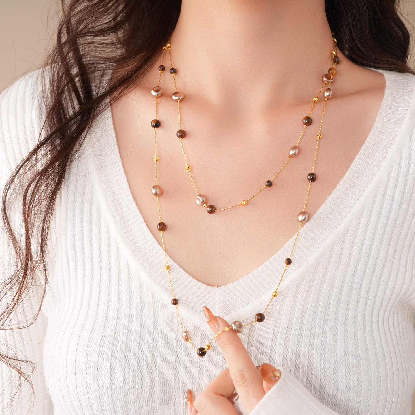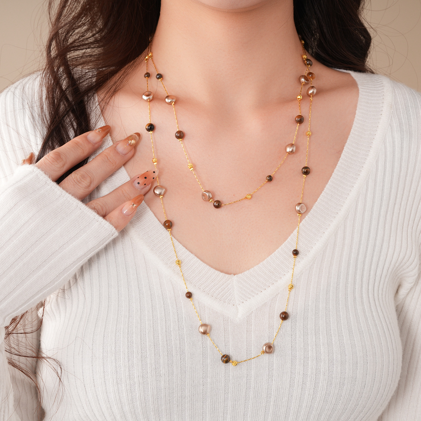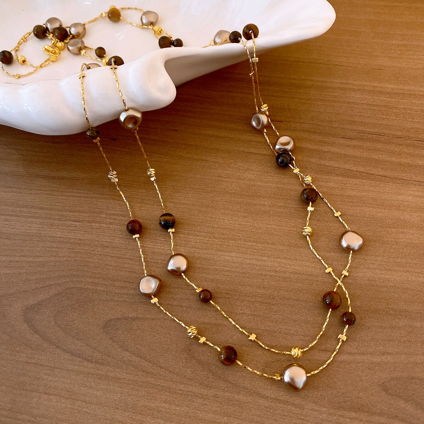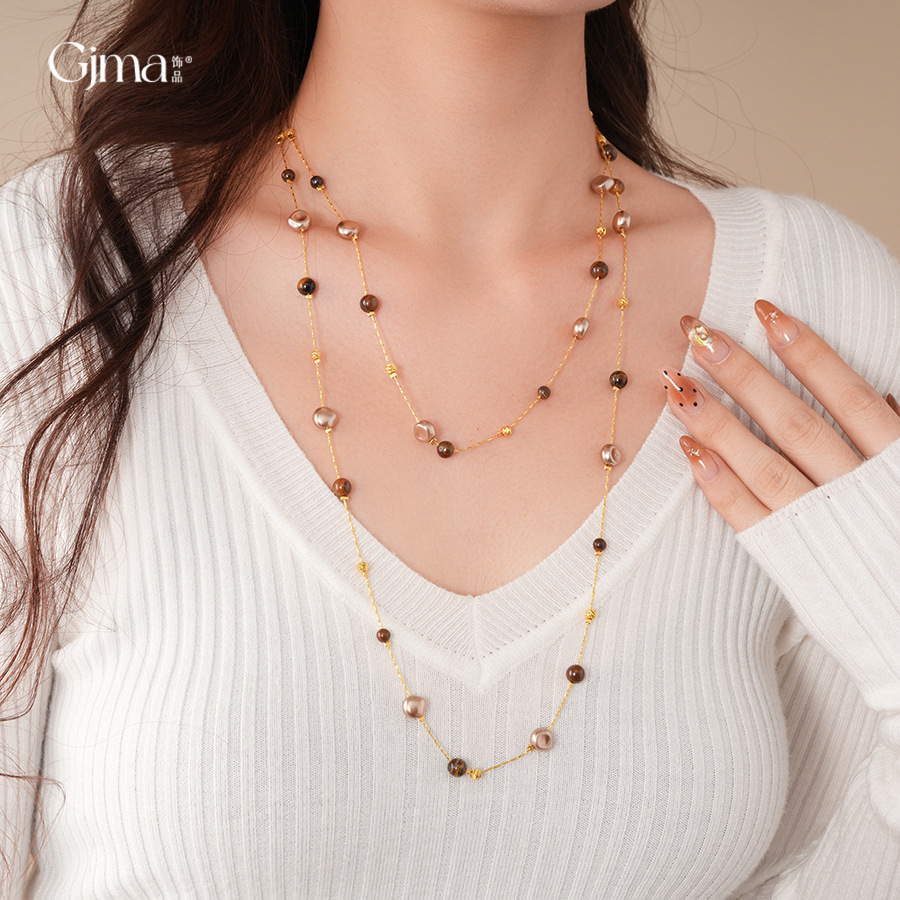 necklace-golden-coffee color (real gold plating)