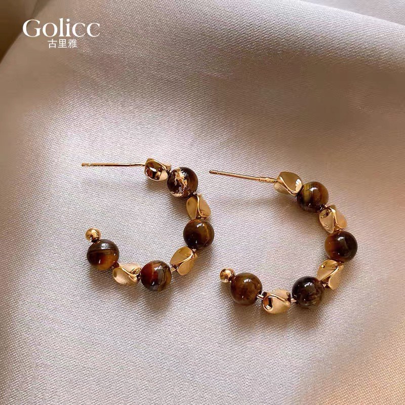 11# ear ring-silver-coffee color (real gold plating)